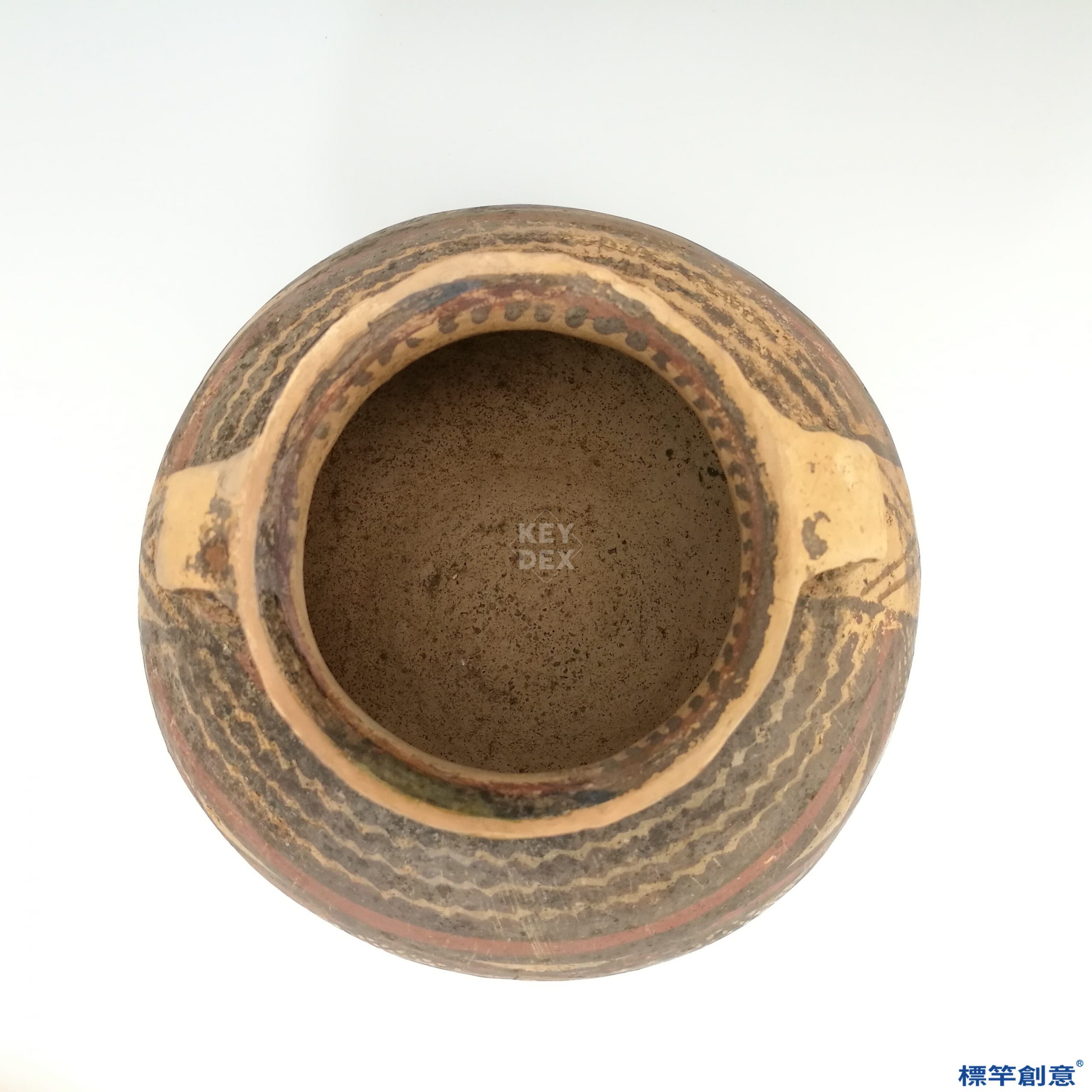 此陶器屬馬家窯文化彩陶代表之一,產於今日甘肅、青海一帶,為仰韶文化晚期的延續與發展階段。該文化以黑褐色幾何紋彩陶最具代表性,其窯燒技術主要為民間手工式低溫燒製。