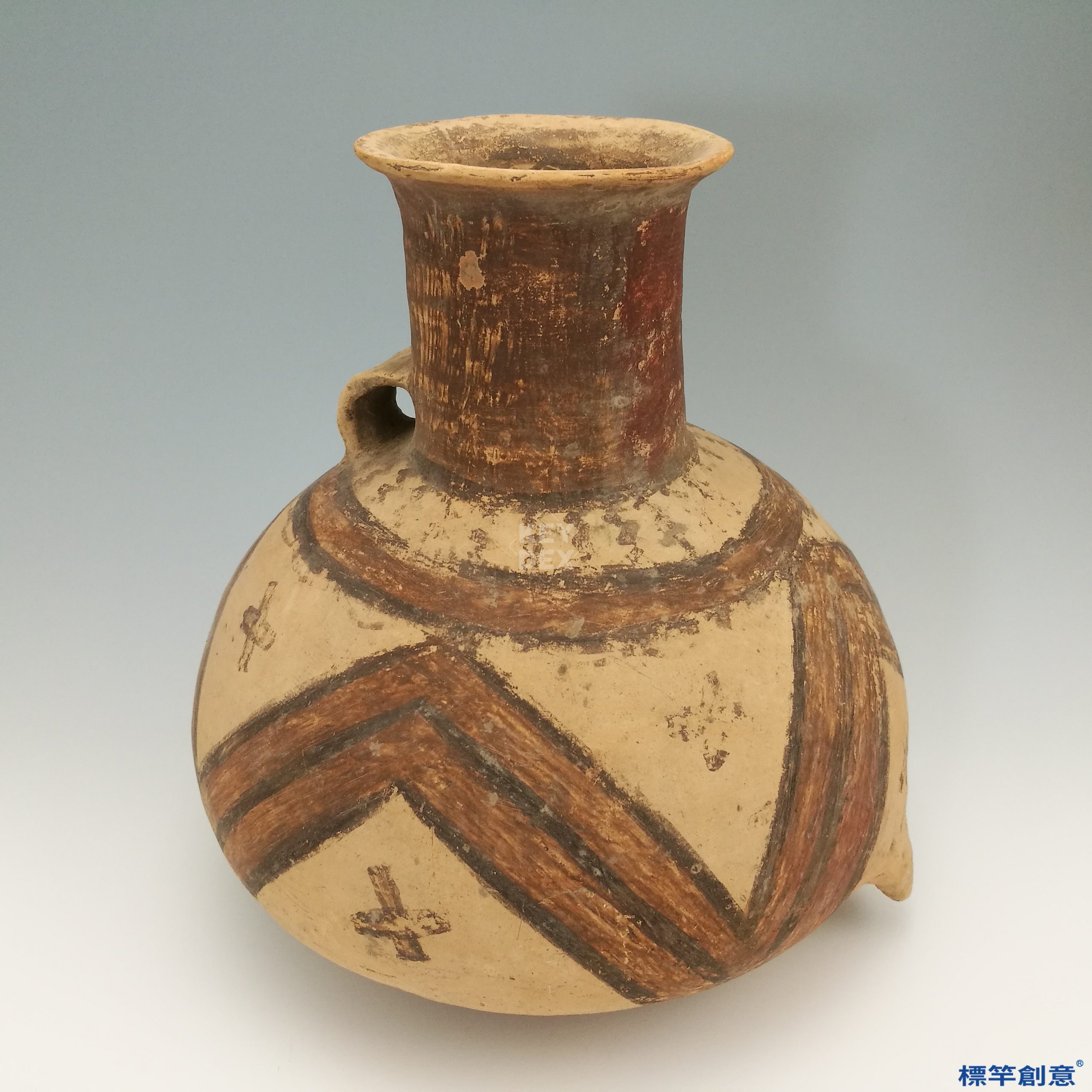AA005 仰韶文化彩繪叉點三角紋單耳陶壺