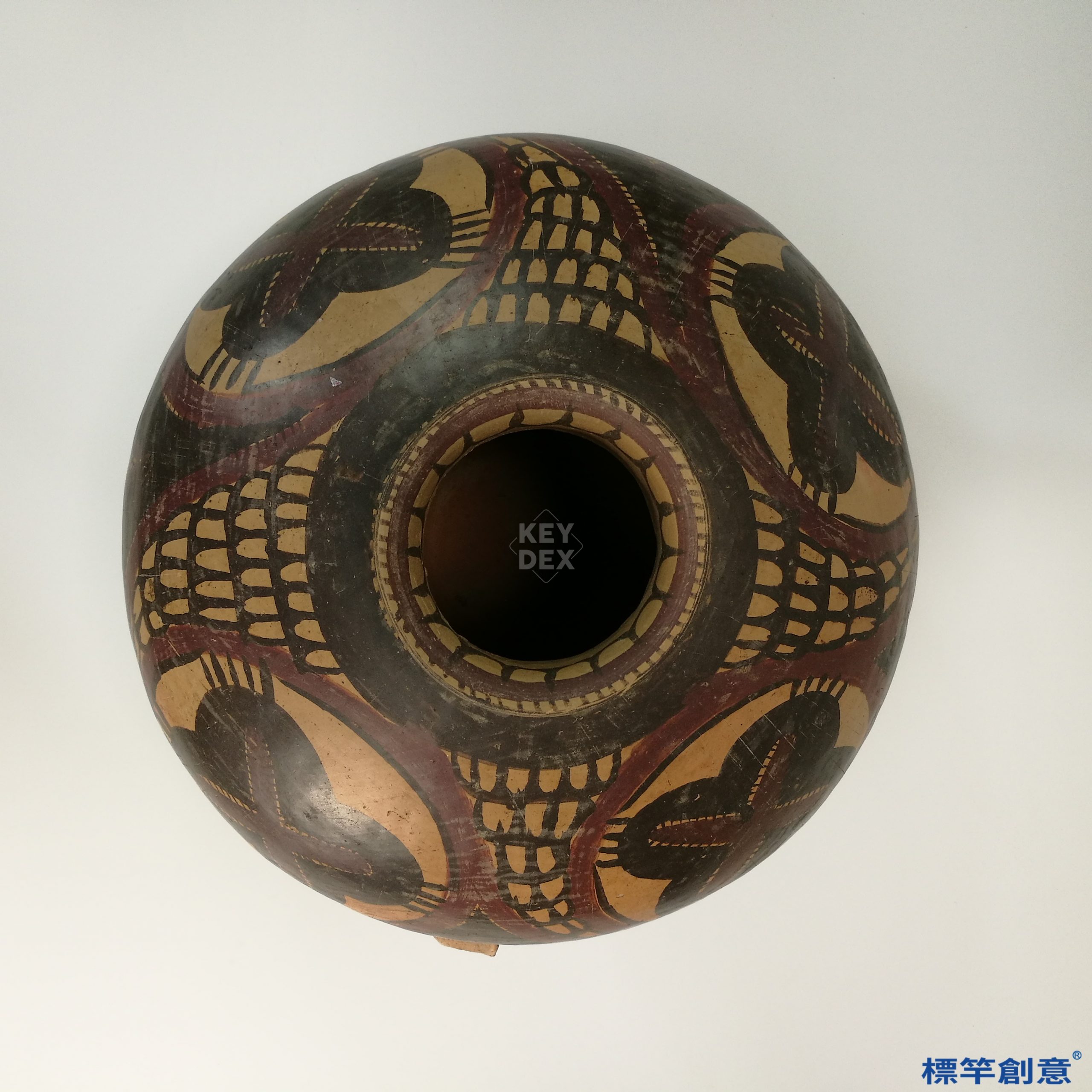 本器造型壯麗、圖案對稱生動,適合作為當代陶藝設計、壁畫構圖、紋樣開發之靈感來源。其網紋與斜帶設計亦可延伸為家居擺件、文創圖騰與視覺識別元素,體現史前美學的當代表達。