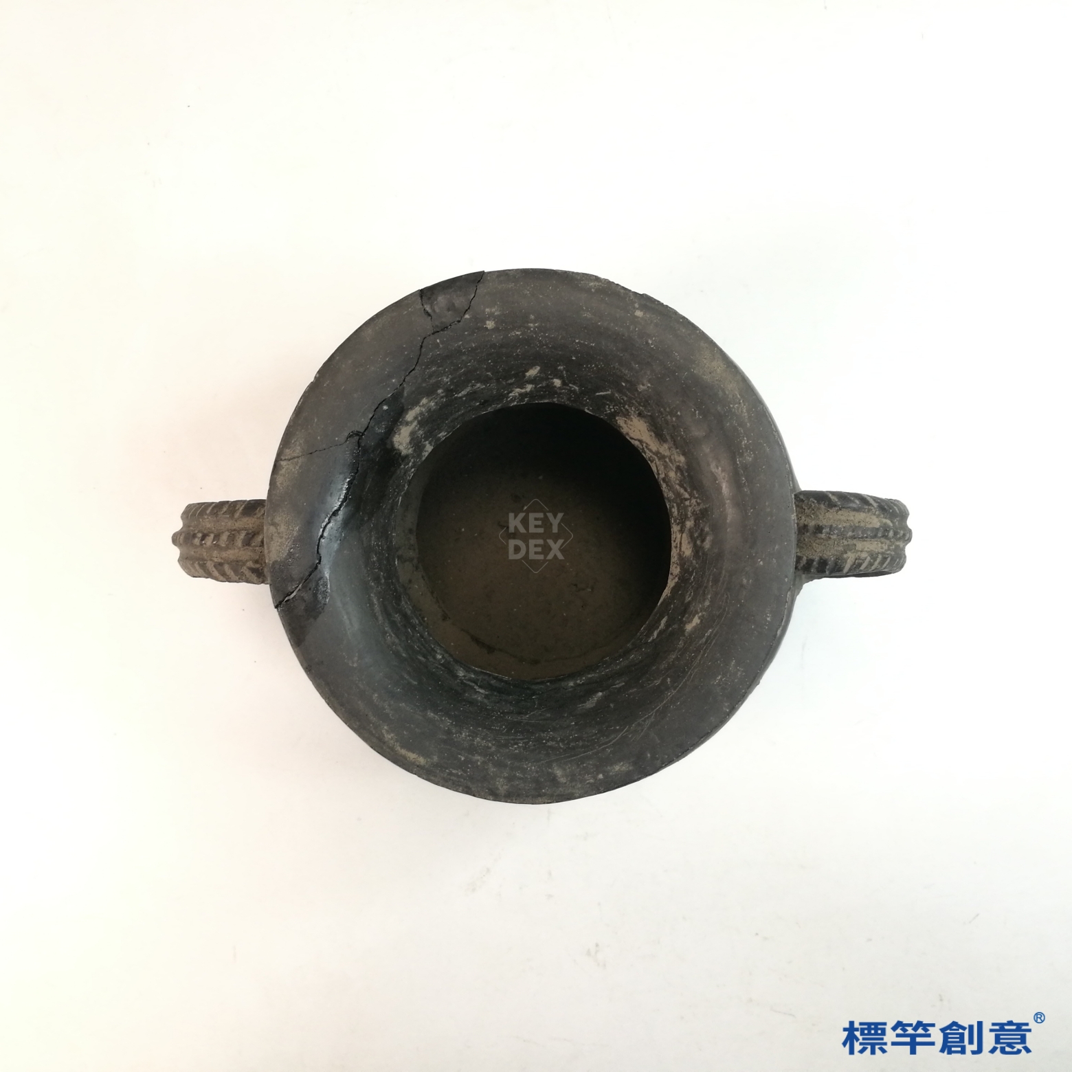 AA009 龍山文化黑陶刻劃幾何紋雙耳薄胎陶罐