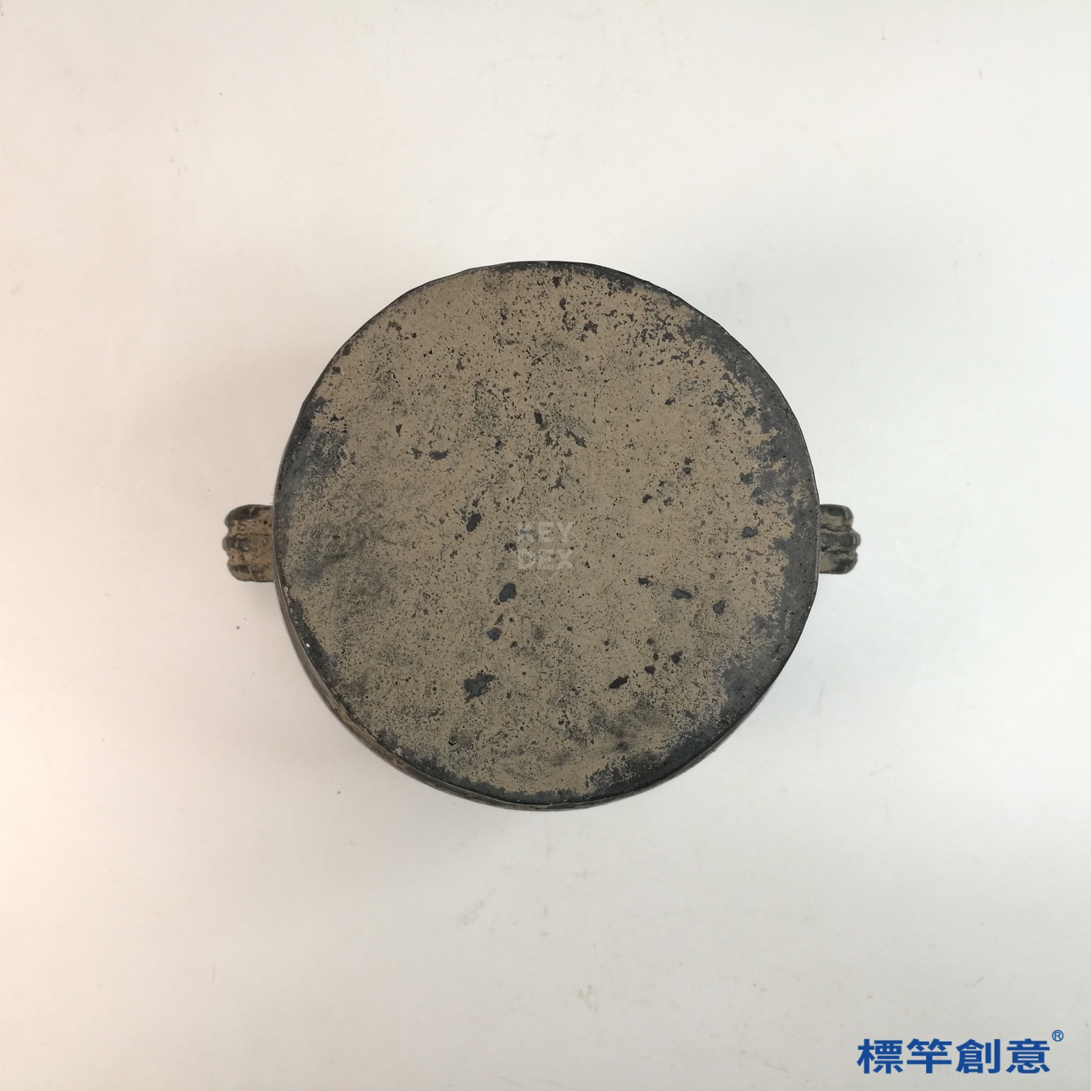 本器高14.5公分,腹徑18.5公分,器形上小下大,圓腹微收,底設圈足。頸部短直,口沿微翹,兩側對稱設有環形耳。造型端莊規整,器表弧度圓潤,整體比例和諧。