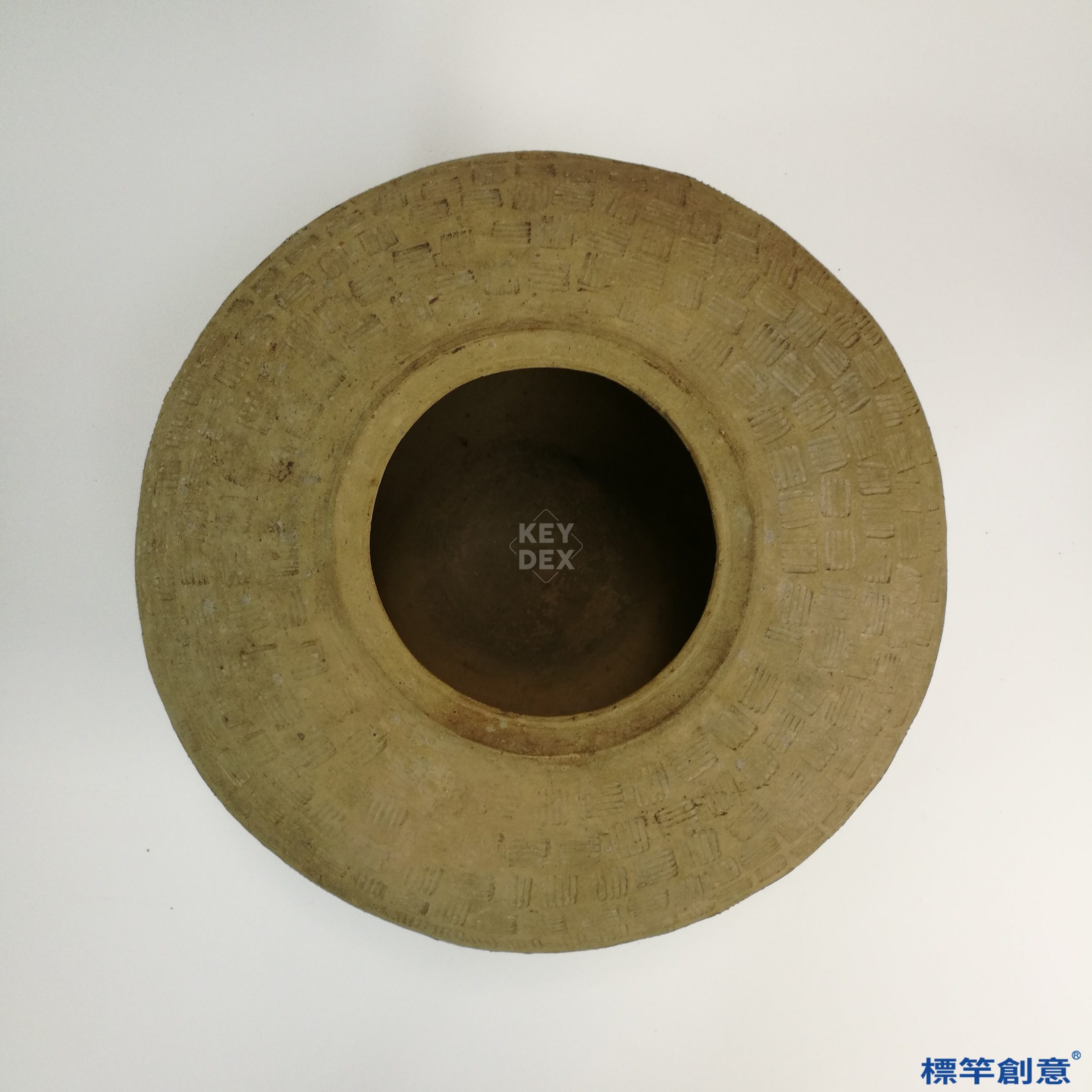 器身格狀印紋具有明確的幾何秩序感,可應用於現代陶藝設計、建築表面處理、視覺圖騰設計等領域。其鼓腹造型亦具象徵「容納、豐盈」意義,適合用於功能性與裝飾性兼具的創作設計。