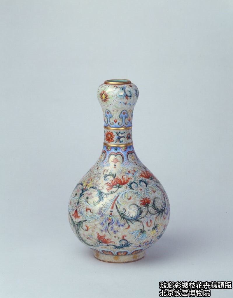 本瓶通高35.5公分,腹徑約20.5公分。瓶身上小下大,頸部細長挺直,與圓鼓形腹部銜接自然,底承小圈足。瓶口外撇微收,整體線條柔和,曲線轉折勻稱,造型典雅穩重,屬典型薑頭瓶制式。