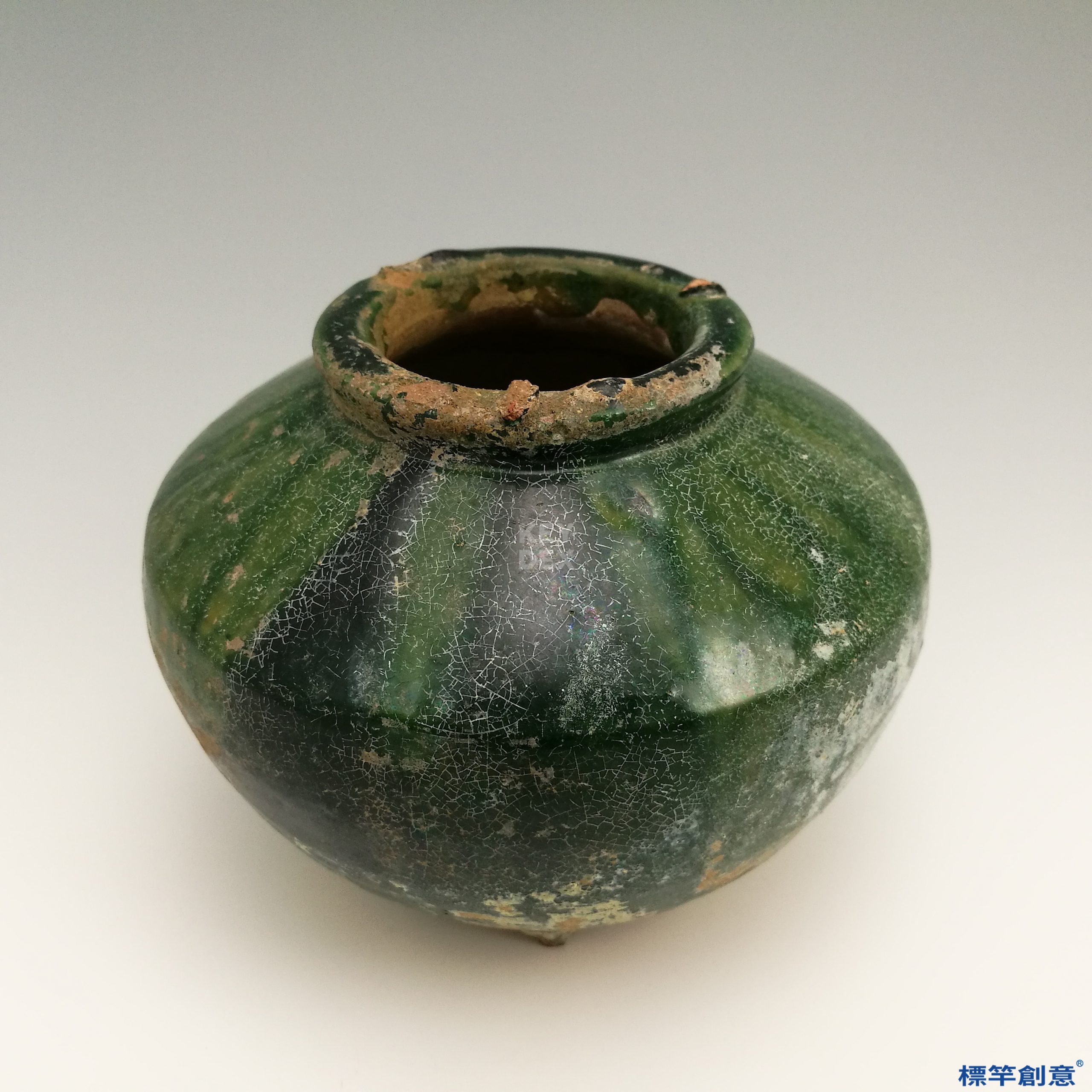 DB025 漢代綠釉陶寬肩束頸圓腹罐