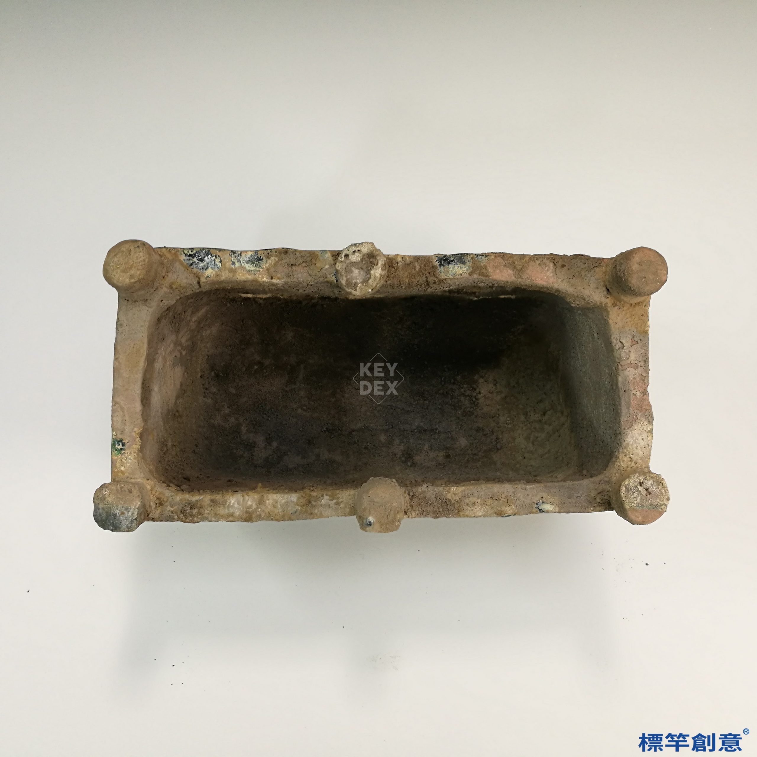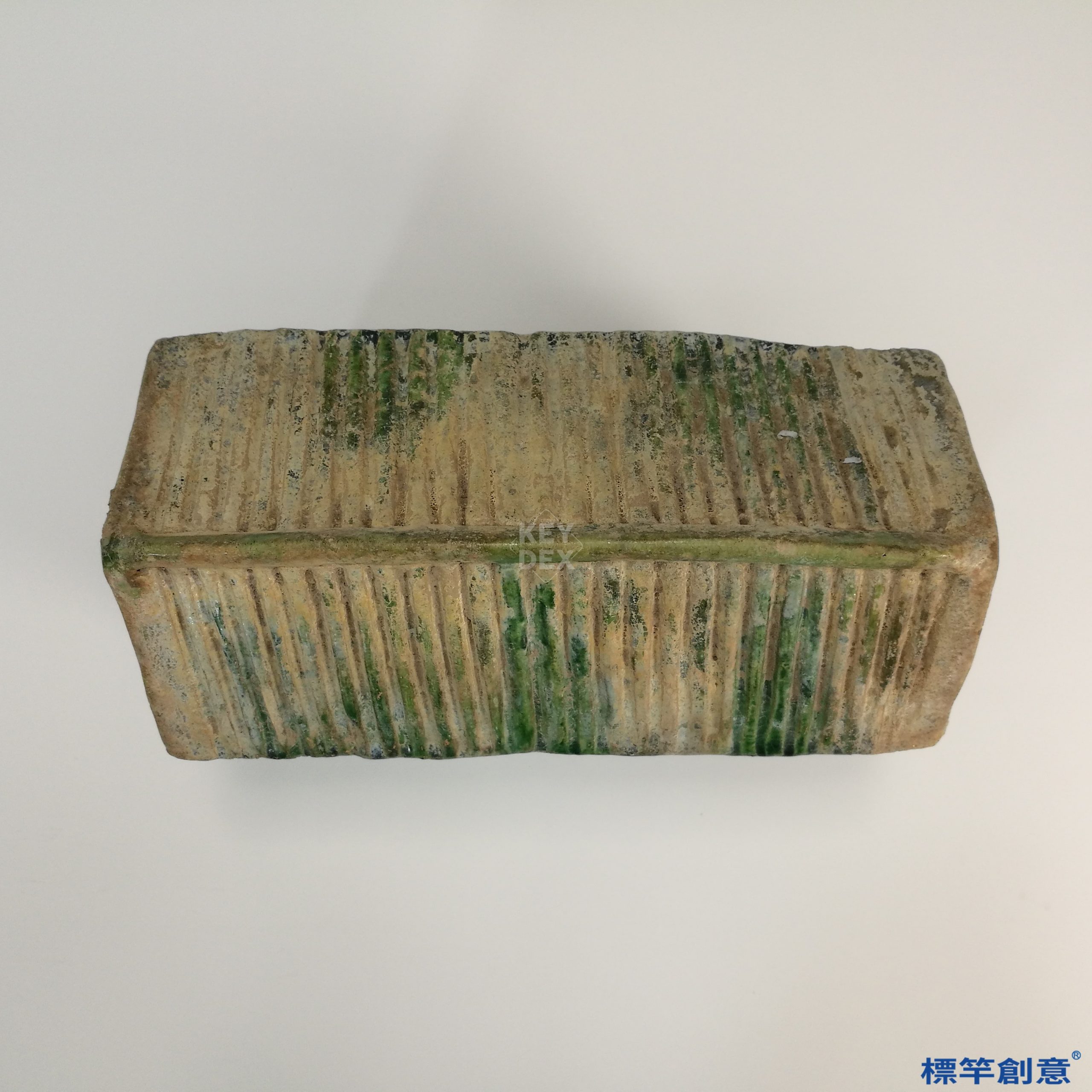 胎體經模製成型後進行細部修飾與穿孔處理,外部施鉛釉,經低溫還原氣氛下燒成。其釉料以氧化銅為呈色劑,燒後呈現綠色,屬典型漢代鉛釉陶。