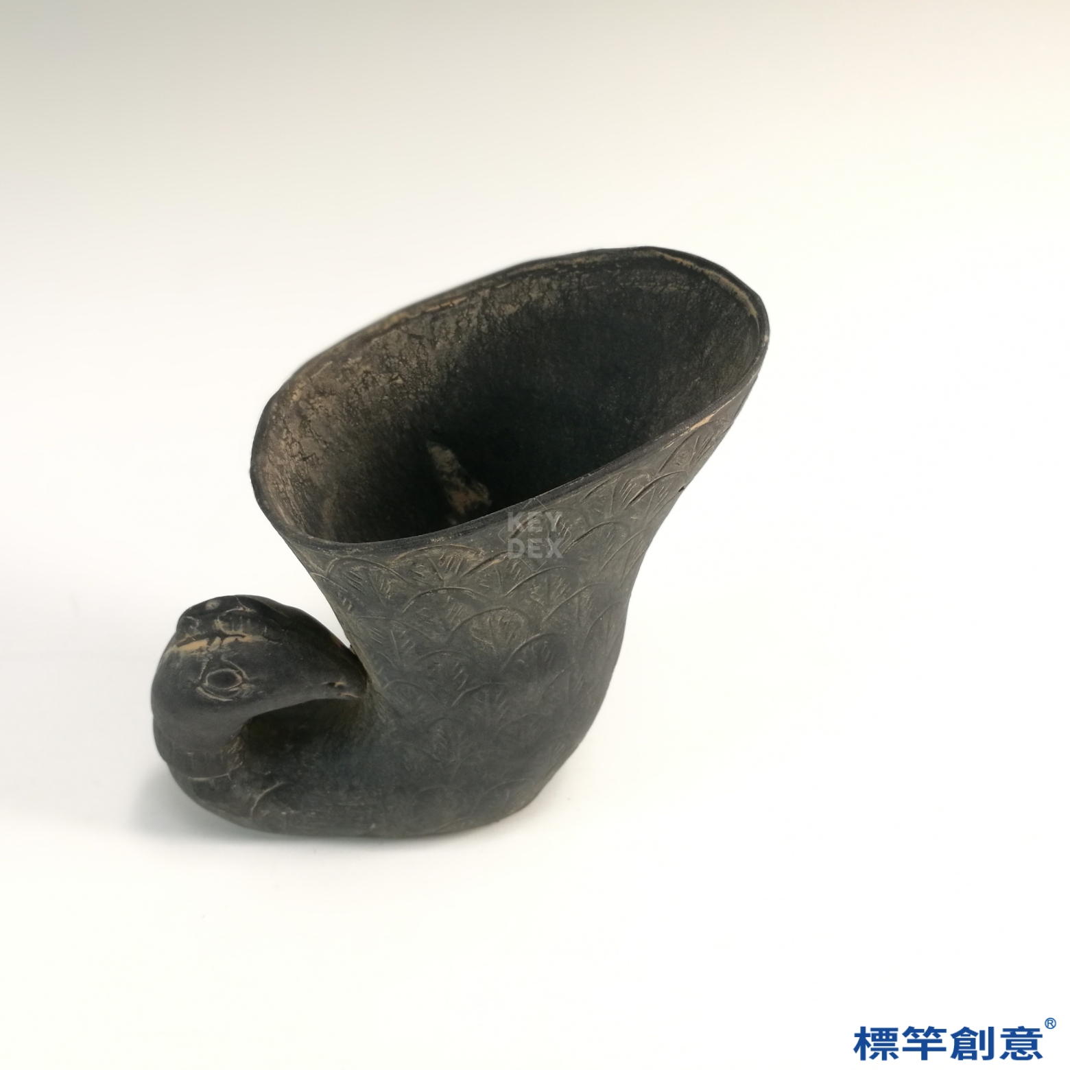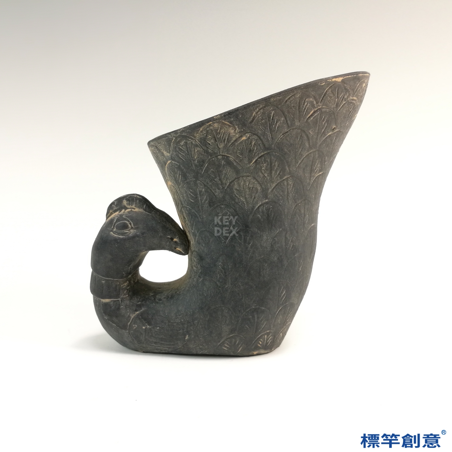 DB036 漢代黑陶刻劃羽紋來通款鳳形杯