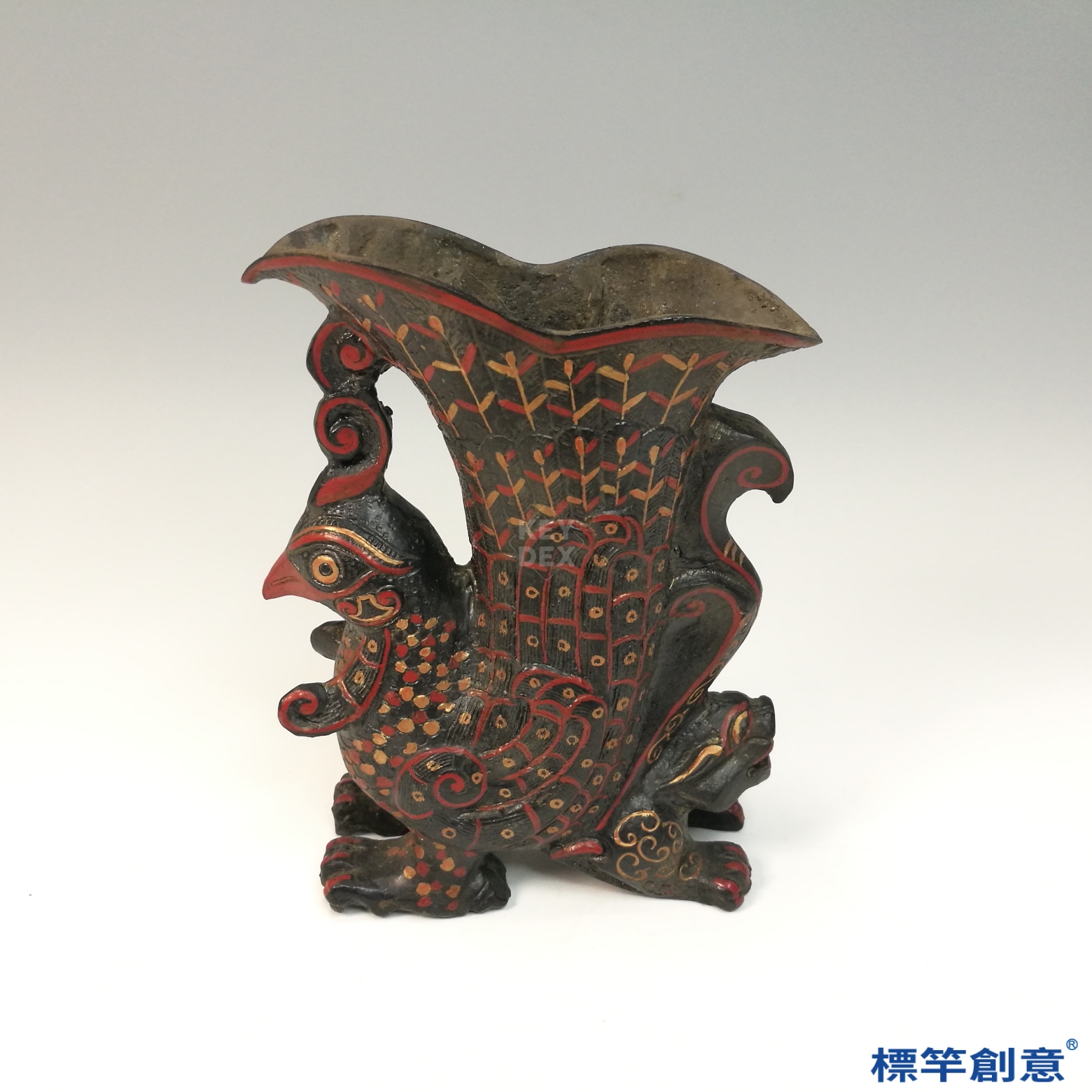 DB044 漢代銅胎漆器來通款玄鳥獸首尊