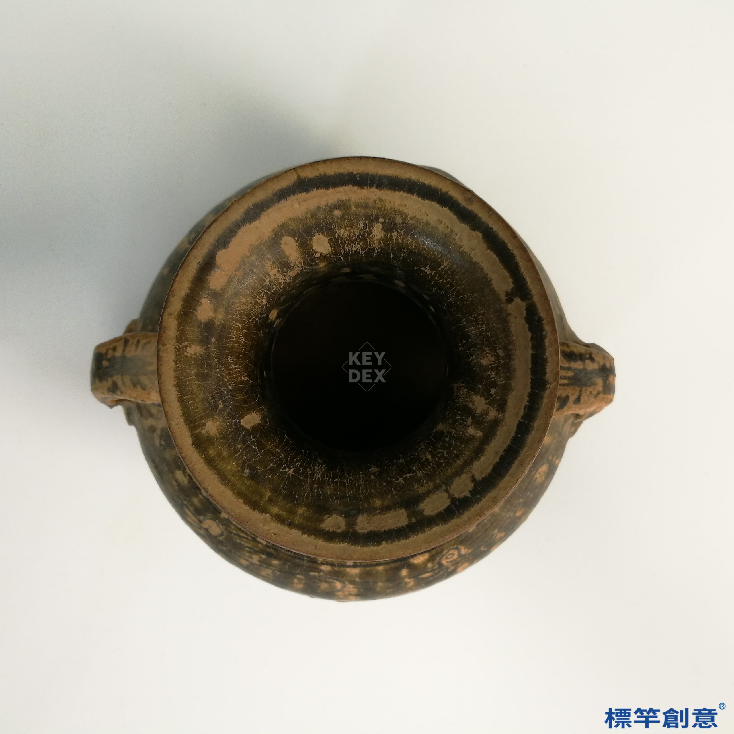 - 褐青釉色:釉質厚潤,呈現自然流淌的垂釉痕跡,為東漢越窯常見的高溫褐青釉類型,光澤柔和,穩重典雅。