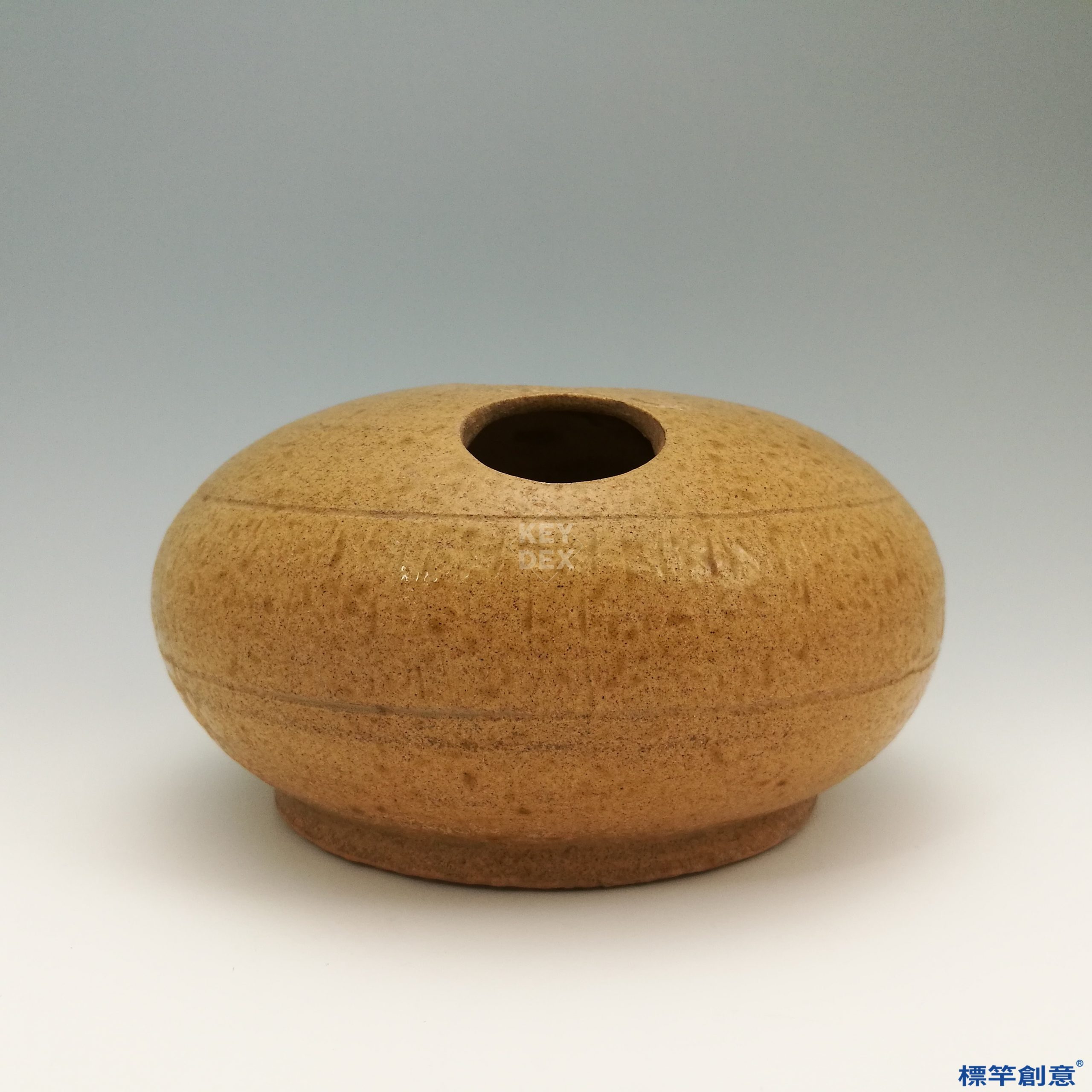 EC010 西晉越窯黃釉四孔圓墩式插花器