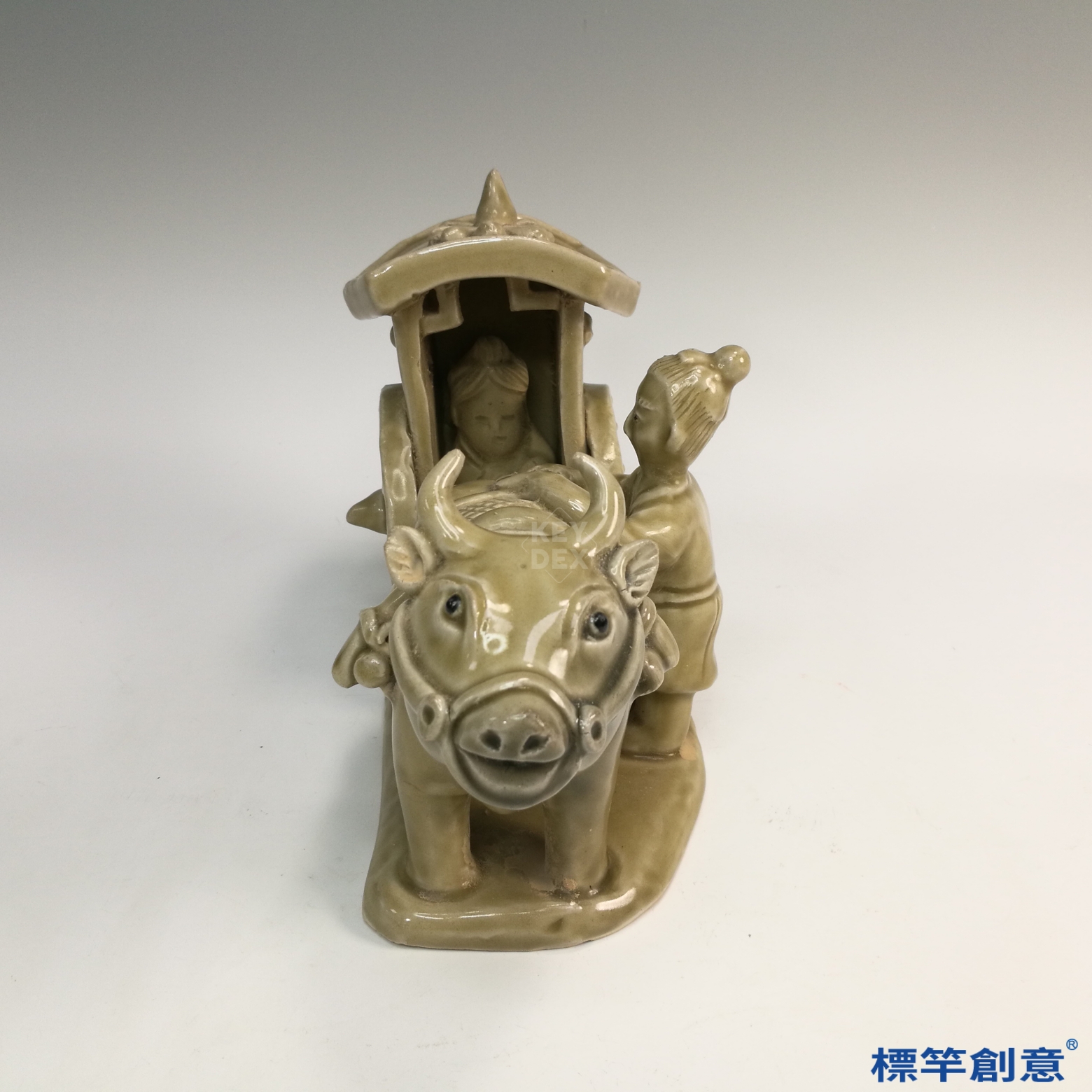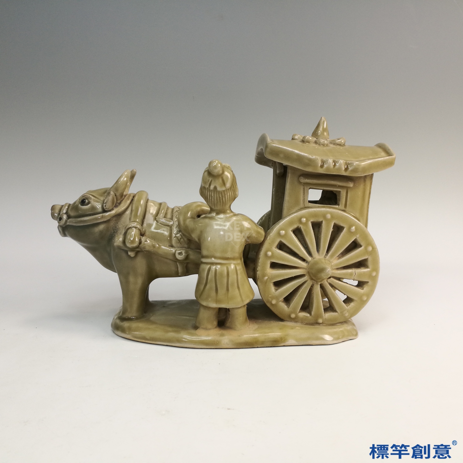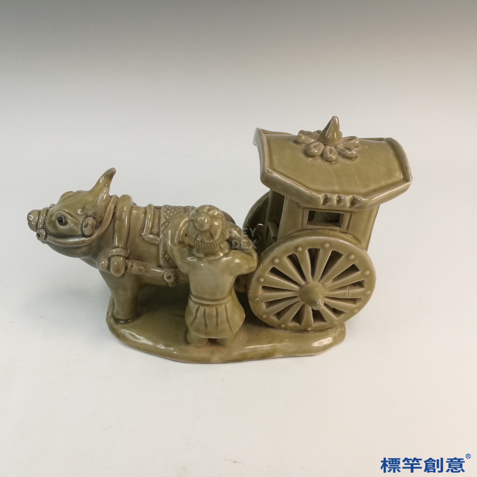 FA014 隋代相州窯土黃釉陪葬牛車車伕俑