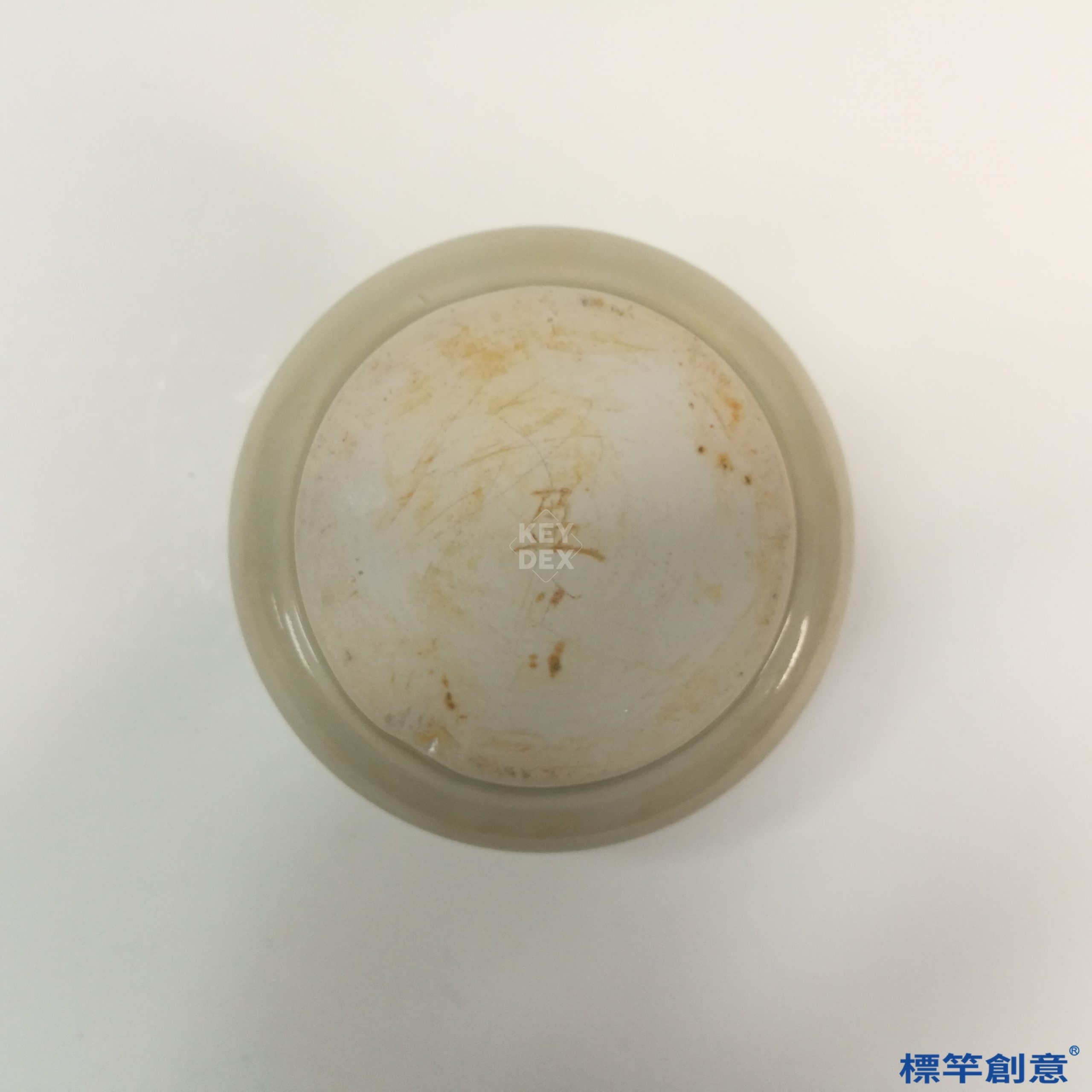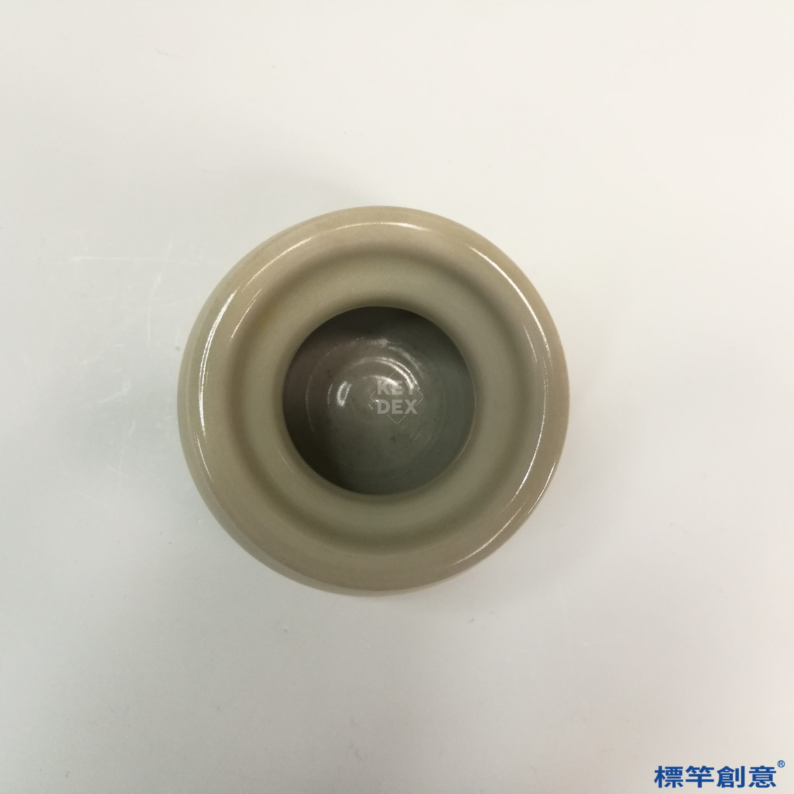 器物應採淘洗細膩高嶺土為胎,旋輪成型後施以米白色高鉀透明釉,在還原氣氛中高溫一次燒成,預估燒成溫度介於 1200–1250°C,成型與釉色均屬成熟工藝。