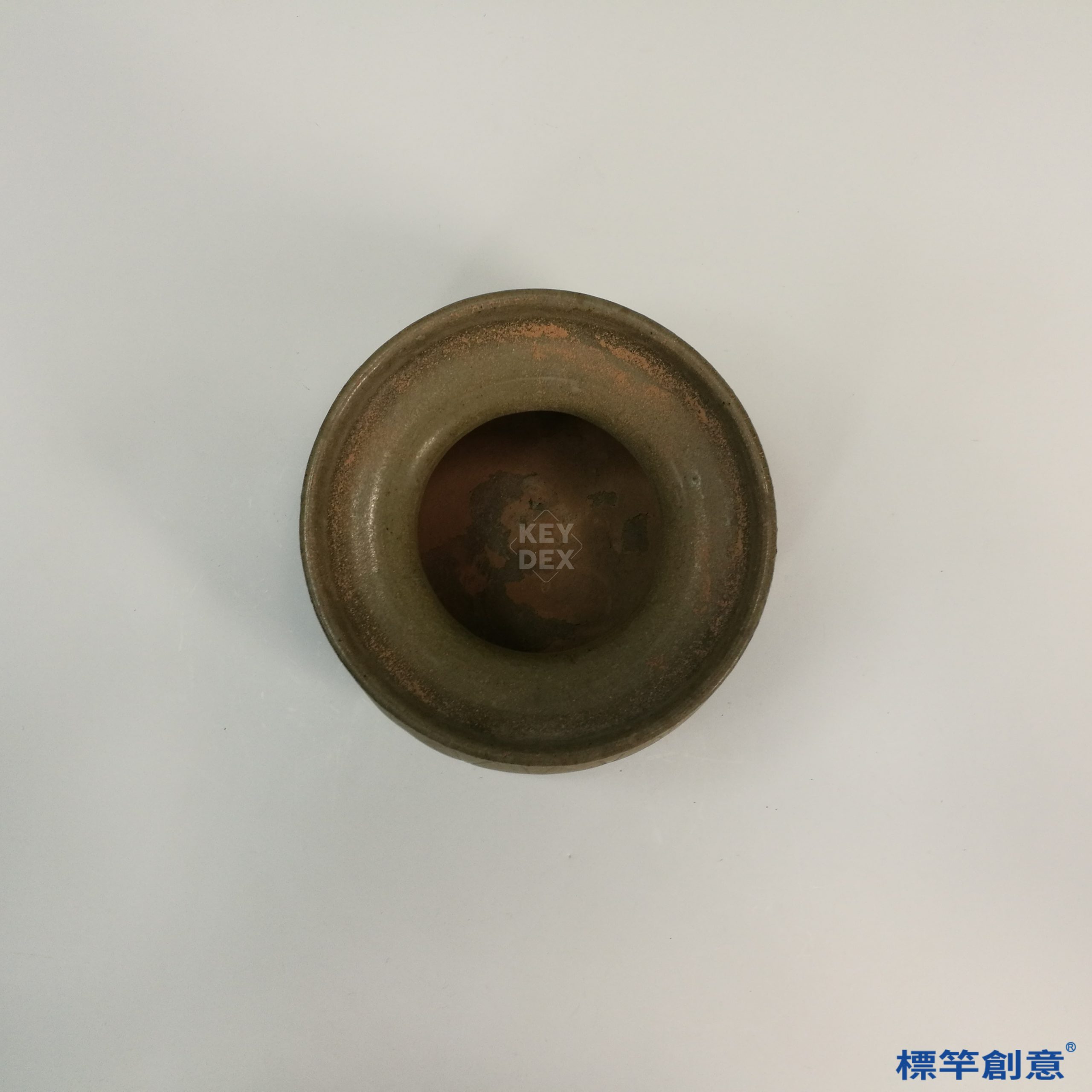 FB031 唐代越窯褐青釉刻蓮瓣紋盤口唾盂渣斗