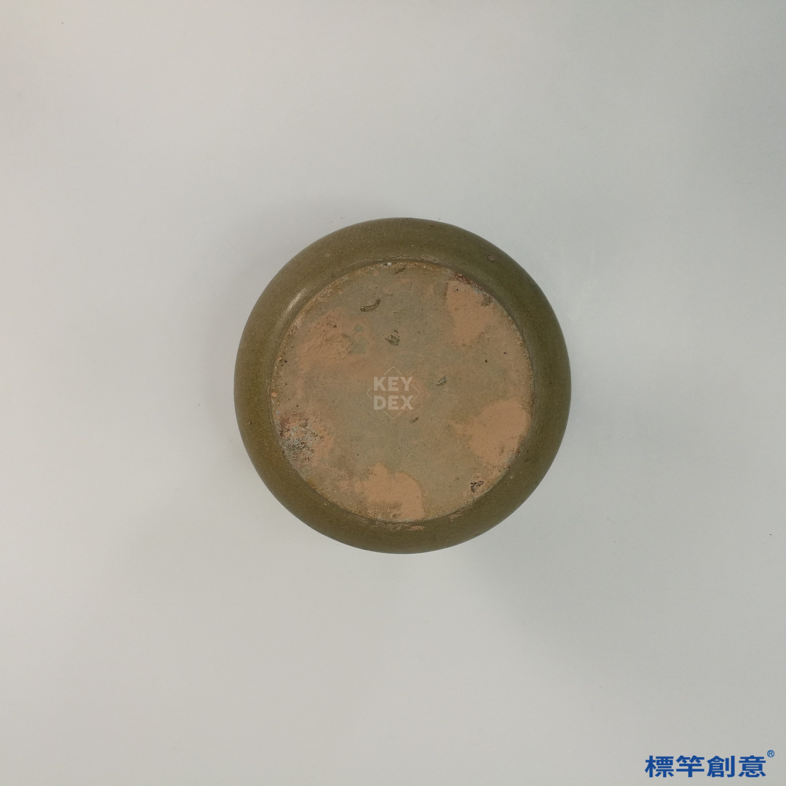 本器通高12.5公分,口徑14公分,器形上部為外撇盤口,頸部內束,下承圓鼓腹,底承圈足,穩重對稱。整體比例均衡,口沿寬闊便於使用,頗具實用與審美兼備之特色。