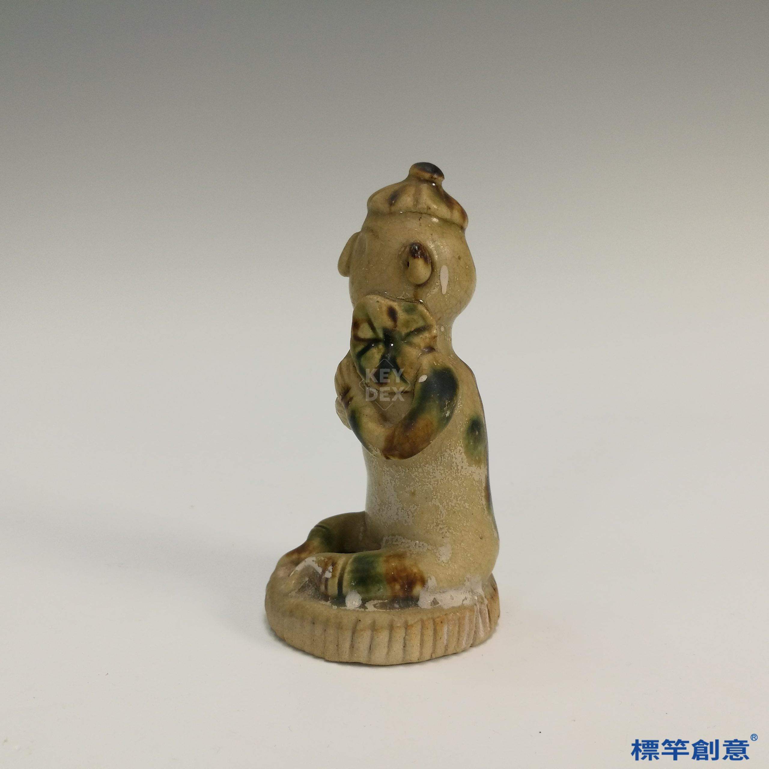 FB033 唐代長沙窯土黃釉點彩盤坐胡人俑