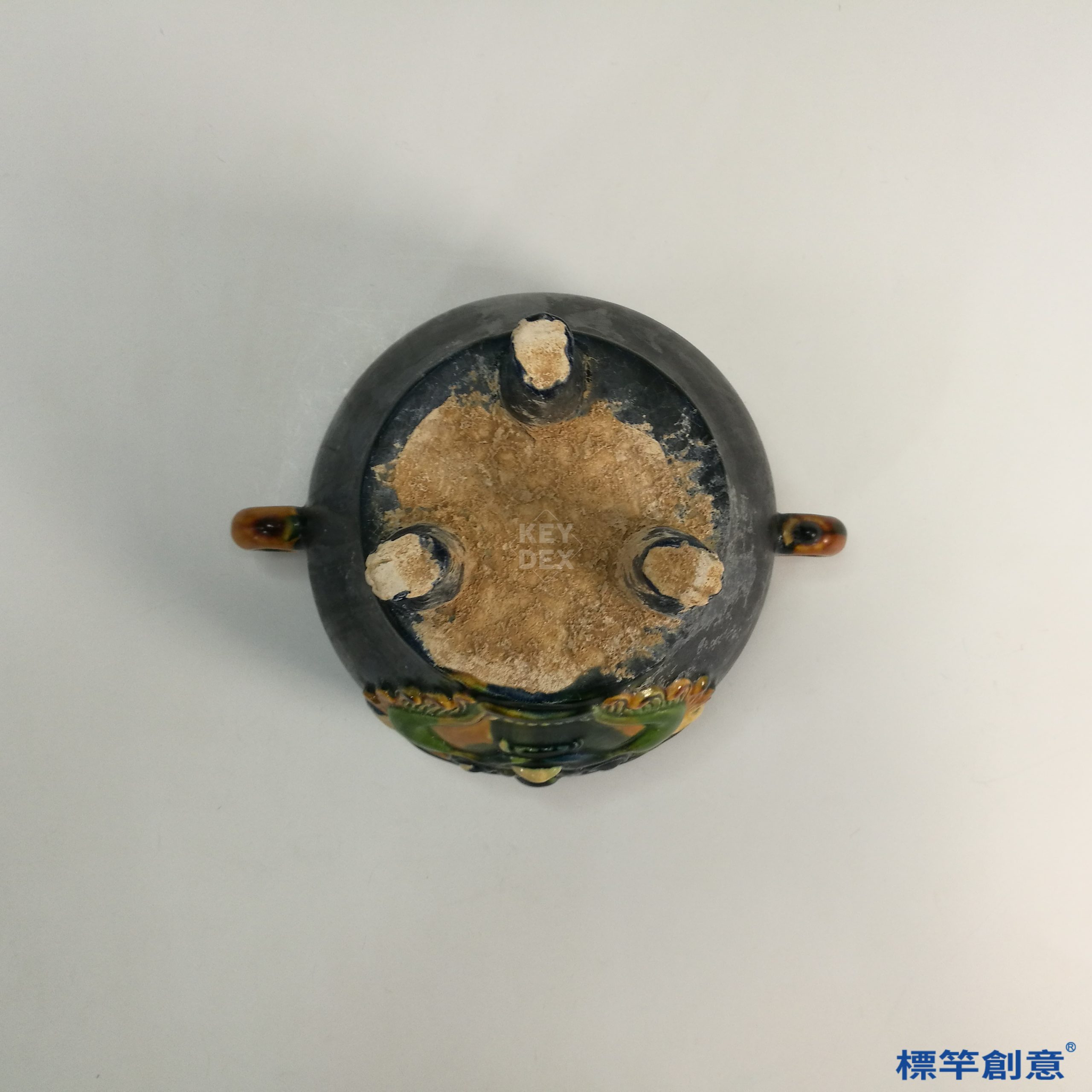 FB047 唐代藍釉三彩獸面紋雙耳香爐