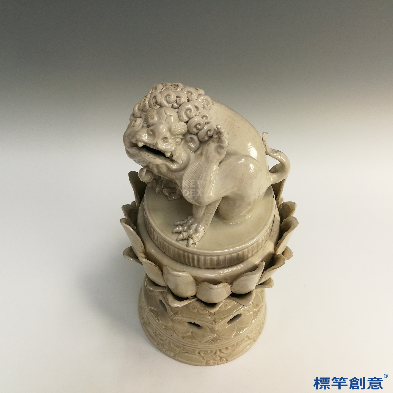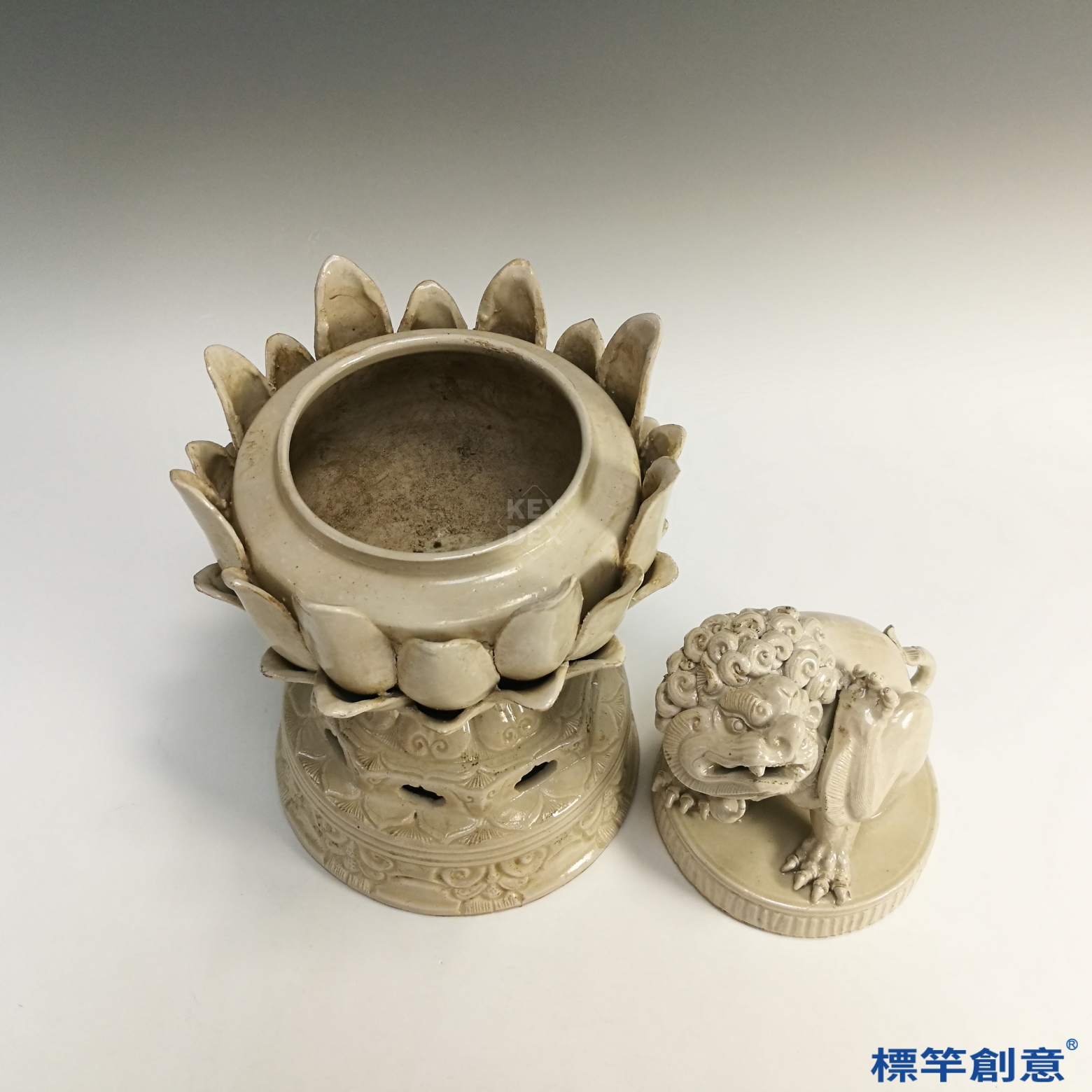 FB048 唐代邢窯白釉塑獅蓮座佛教薰香爐