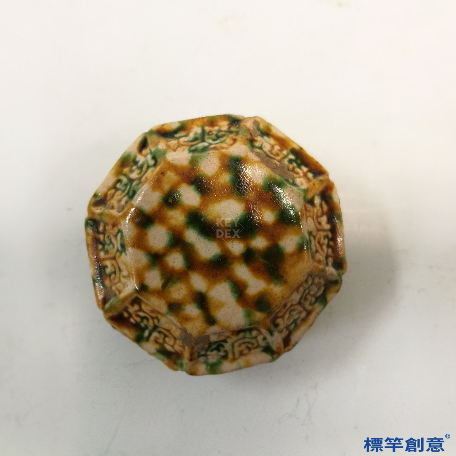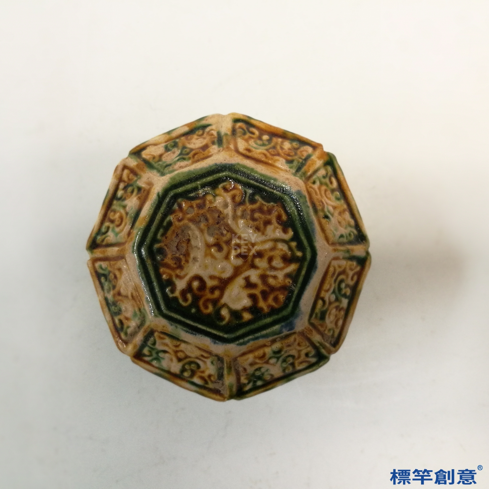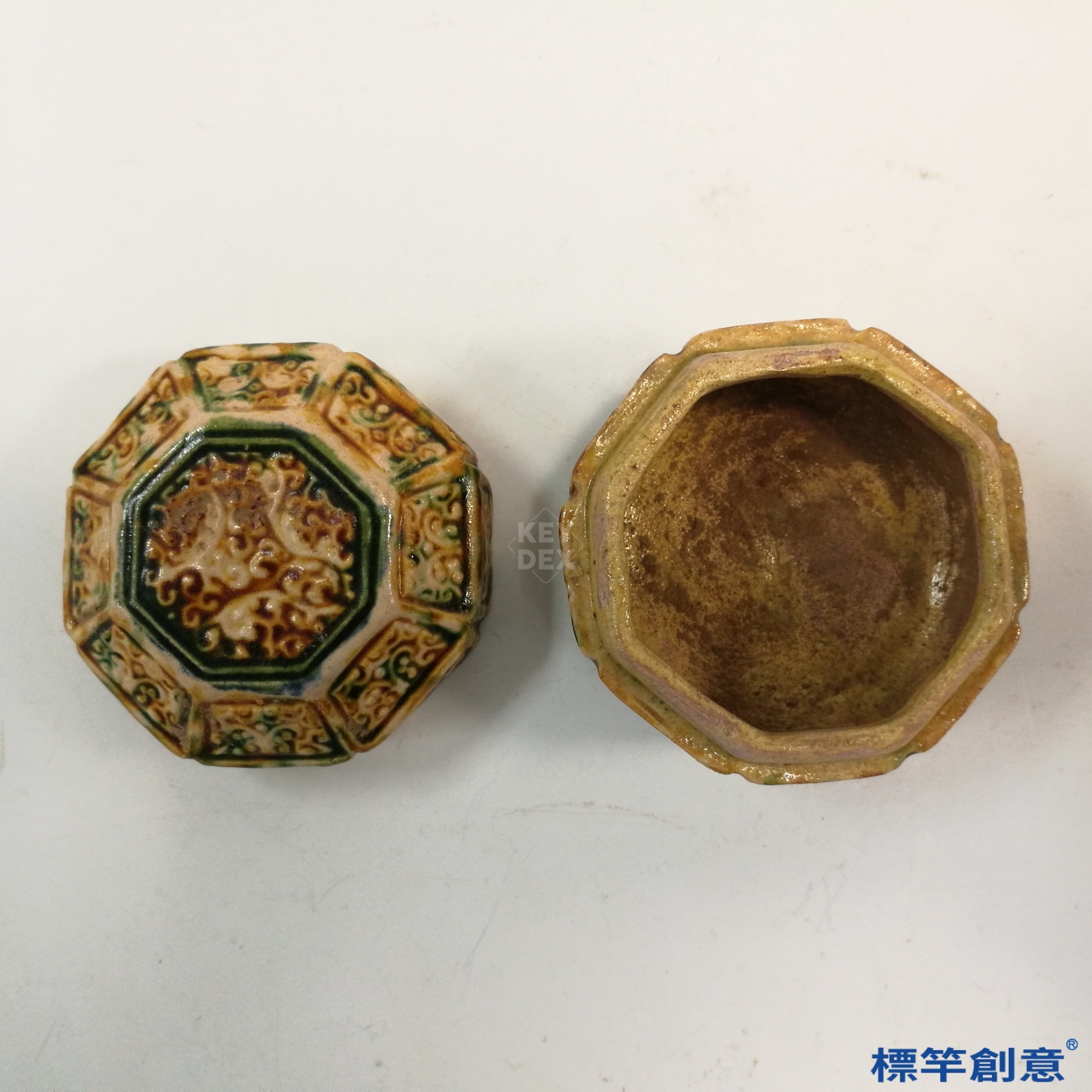 FB078 唐代鞏義窯三彩陶仿金銀器八方首飾盒