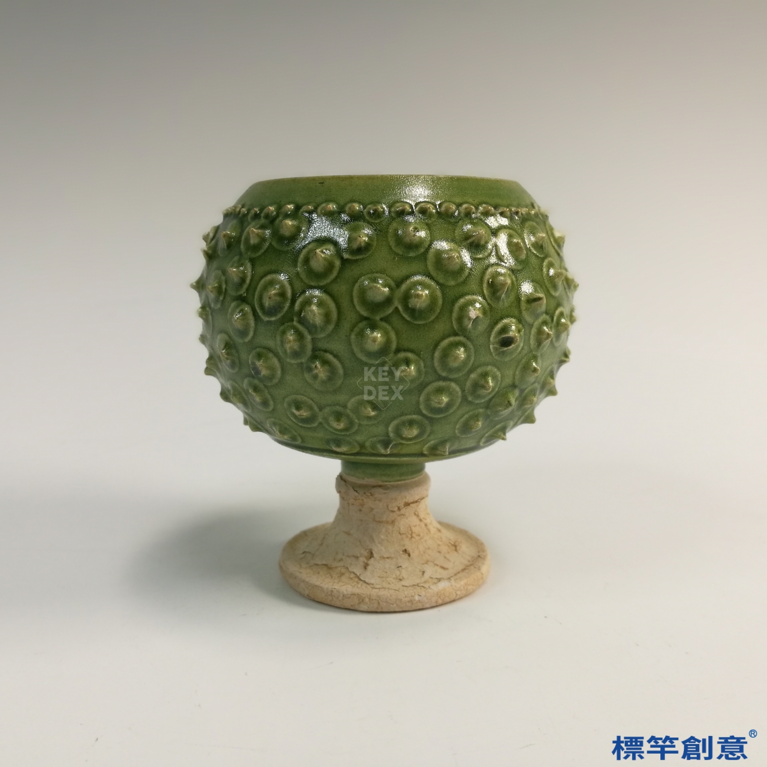 FB086 唐代黃冶窯綠釉陶貼塑圓點紋仿金銀器高足杯