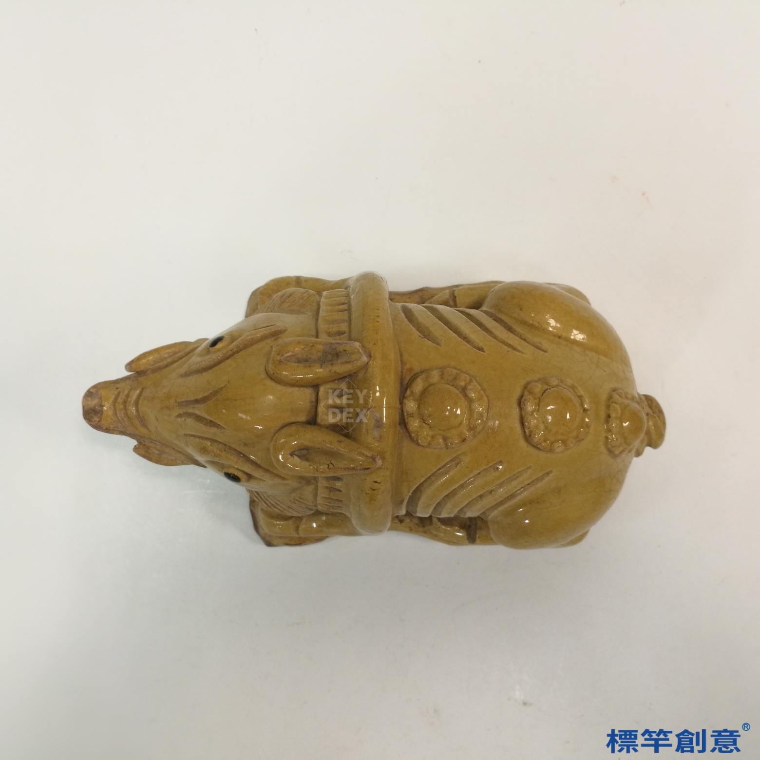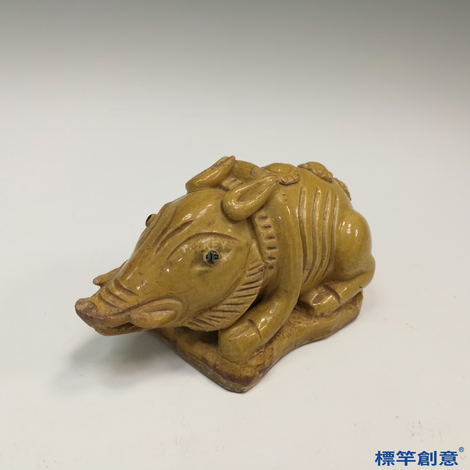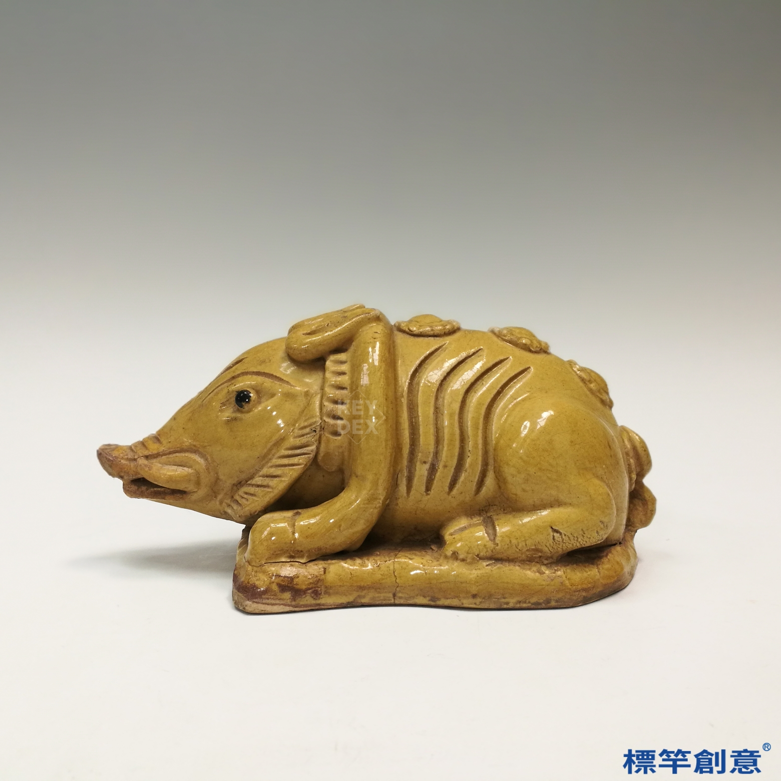 FB101 唐代相州窯黃釉貼塑野豬形文房紙鎮