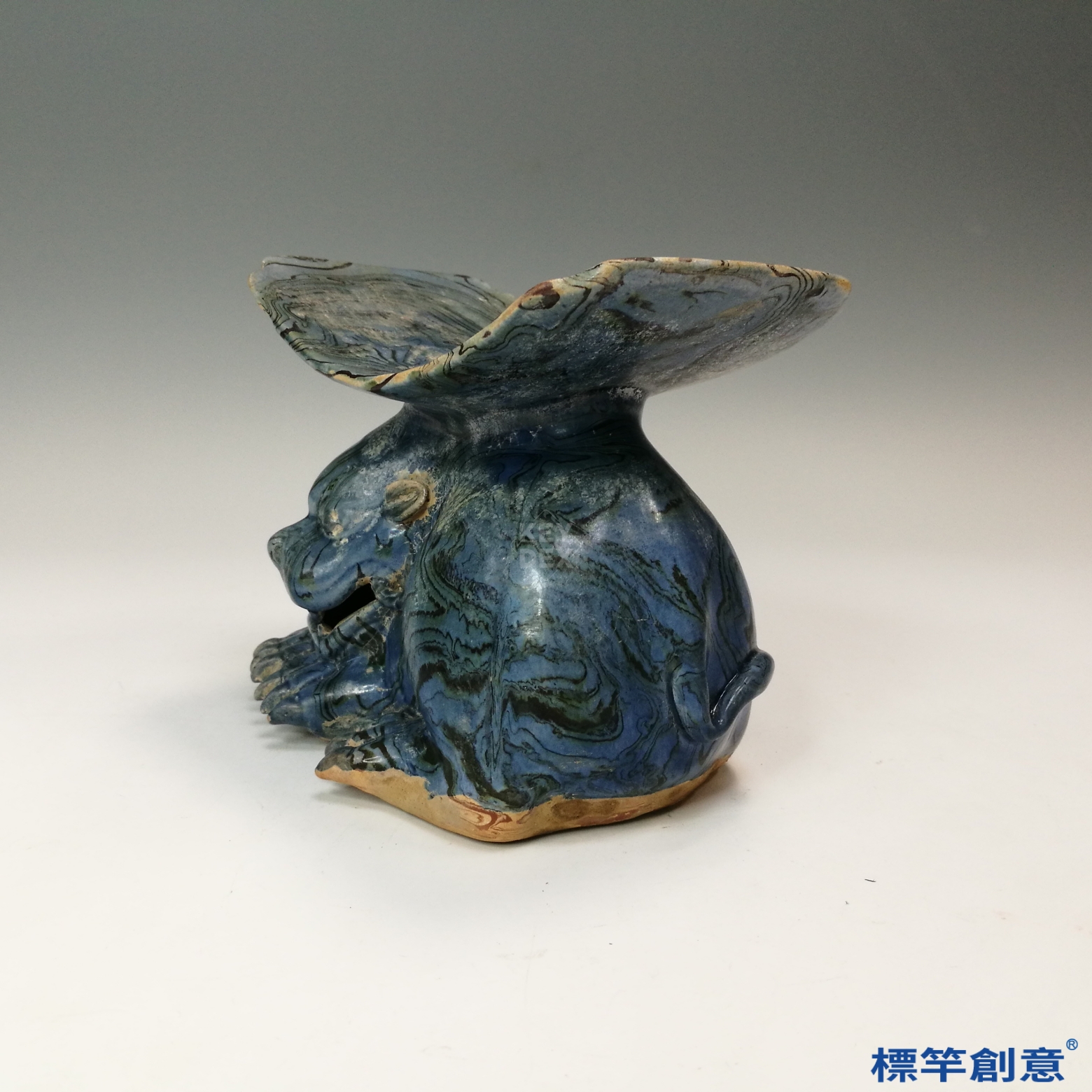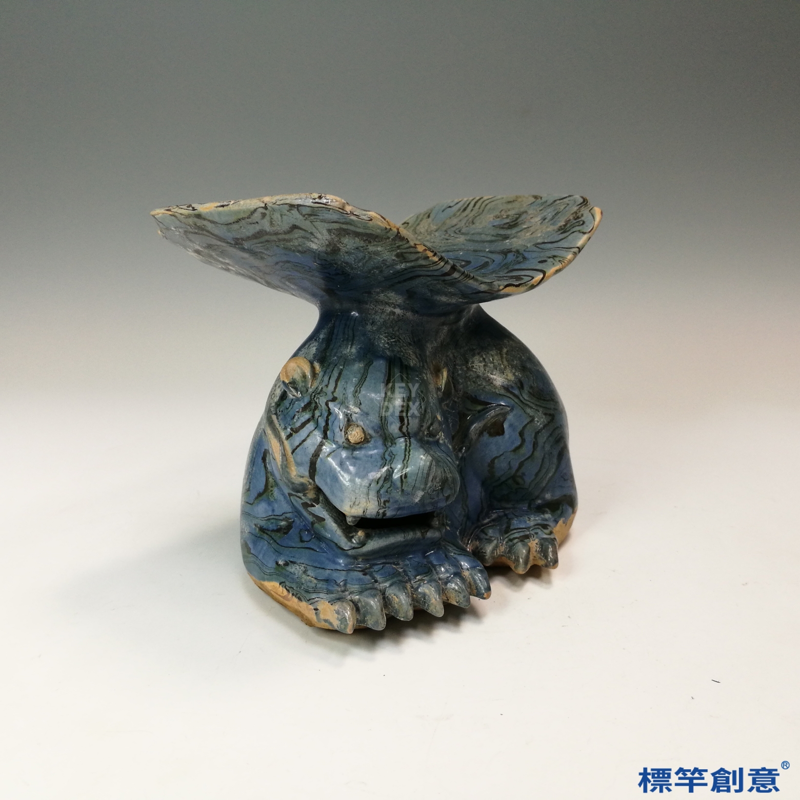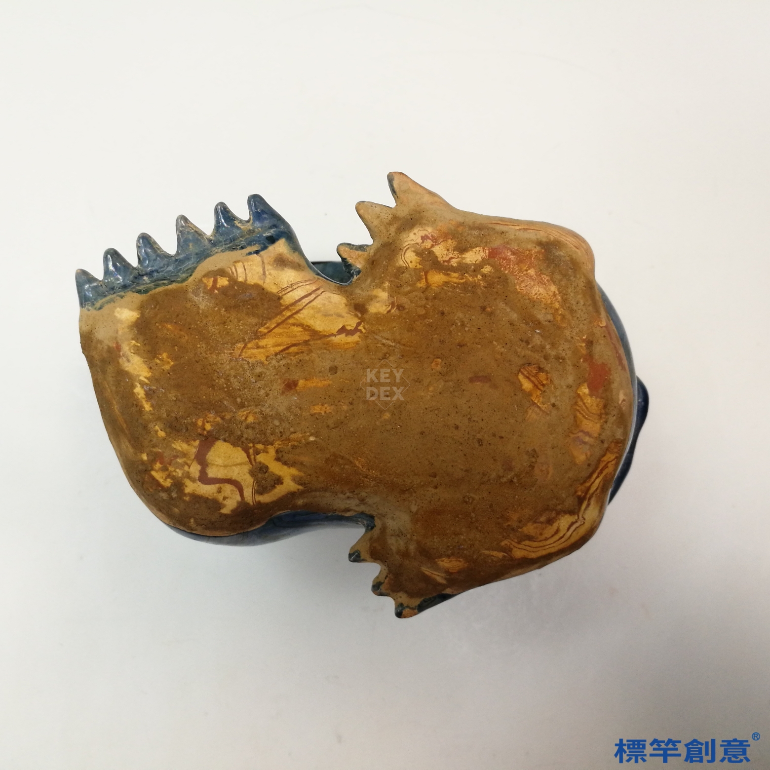 此件作品可作為當代陶瓷設計中宗教護法題材與實用結構融合之參考範本,亦適合轉化為文創藝術枕、供桌陳設件或博物館教育延伸設計。絞胎紋理與瑞獸意象均具高辨識度與再設計潛力。