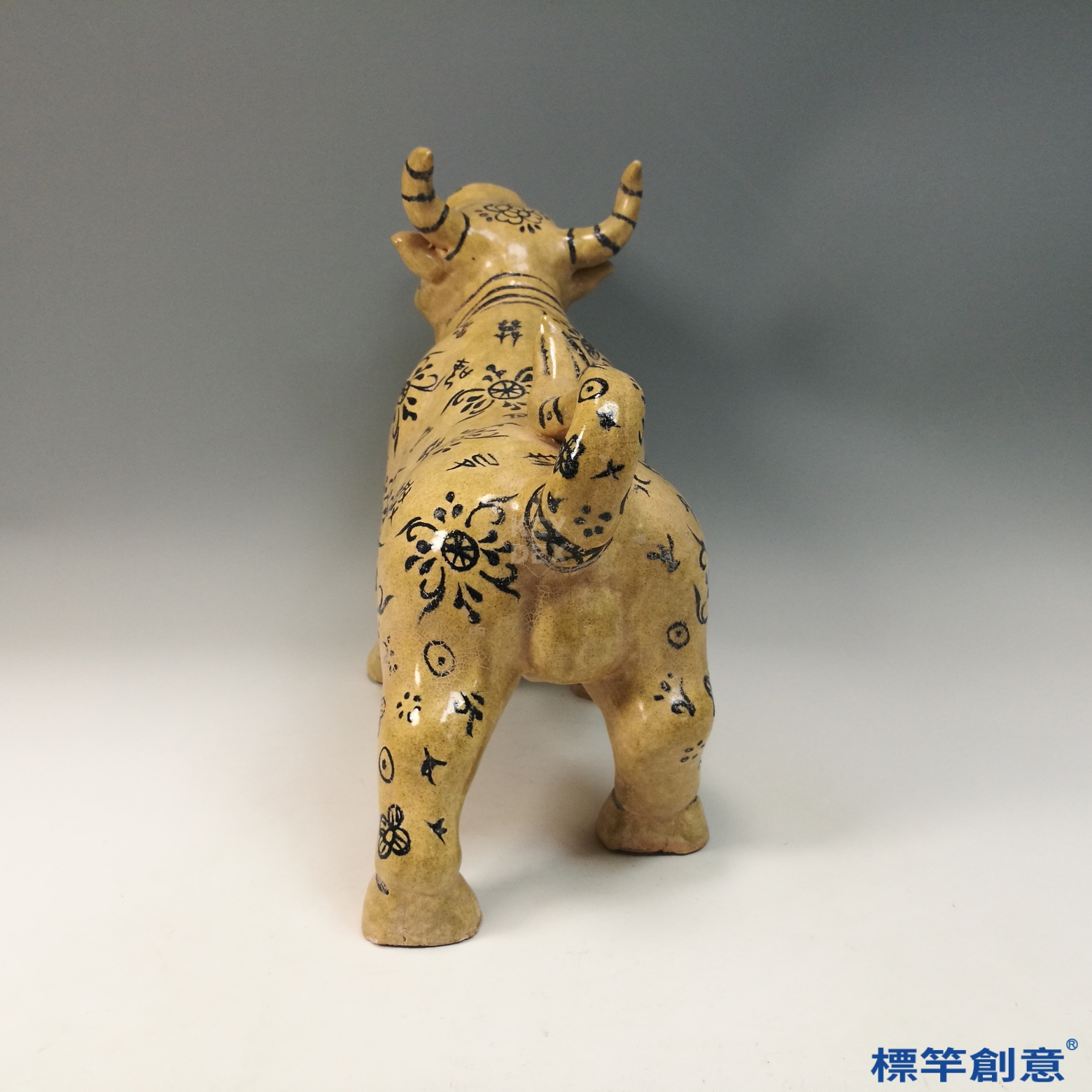FB138 唐代鞏義窯青花瓷彩繪耕牛