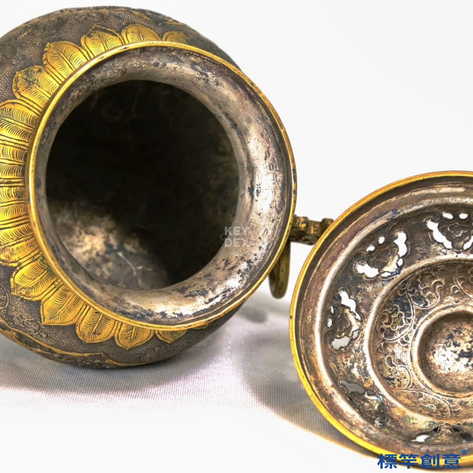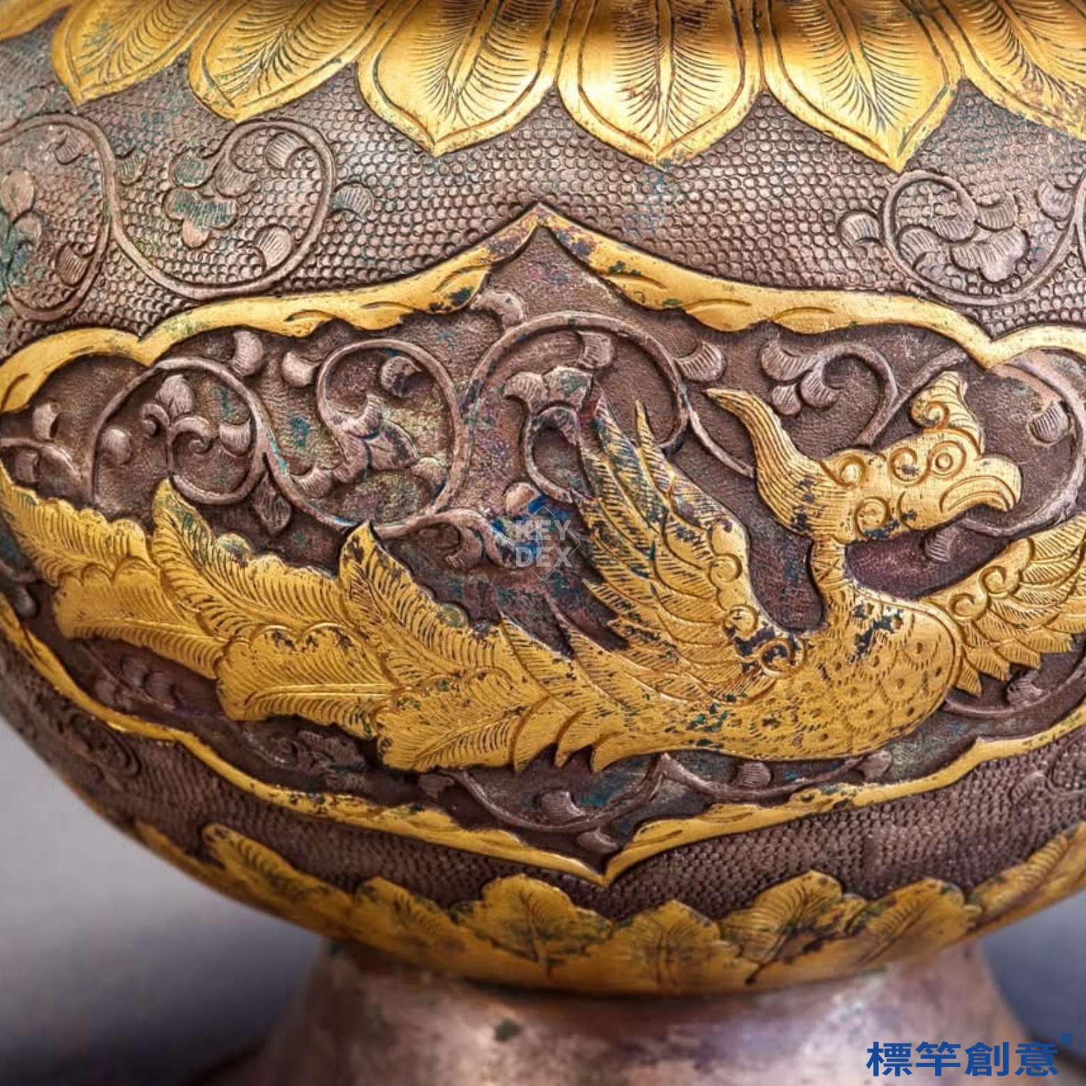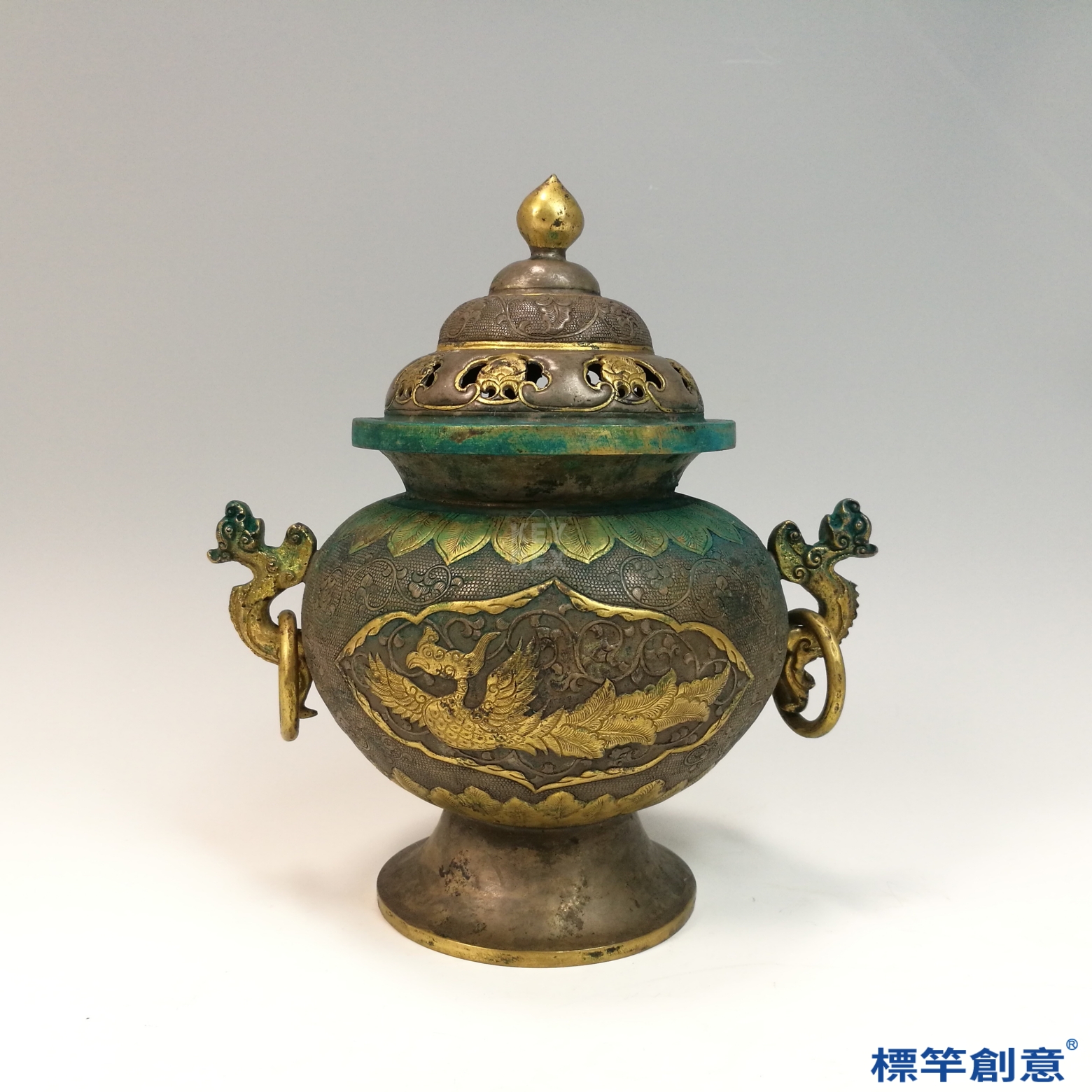 此器集金銀鍛造、鎏金、鏤雕與浮雕技術於一身,鳳紋寓意高貴與祥瑞,亦與佛教飛天形象相通。雙耳設計與蓋鈕結構融合禮制與實用需求,為研究唐代金銀器、香文化、宗教器具不可或缺之實物資料。亦反映唐代對外交流中吸納中亞金屬工藝之成果。