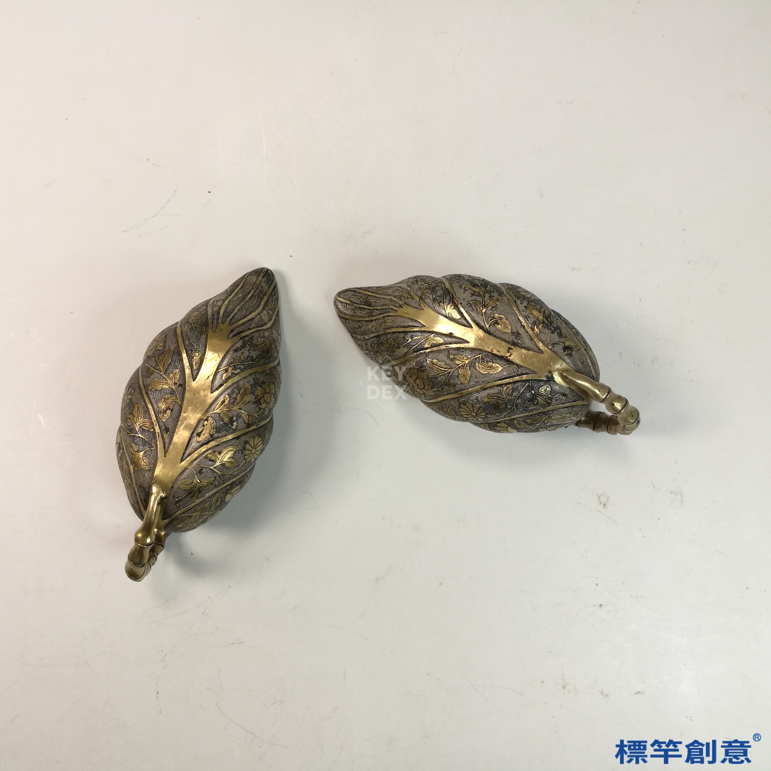 本器為成對組合,每件高約6.8公分、長14.5公分,器形仿自然葉片捲曲之勢,口沿波狀起伏,前端尖翹如葉尖,後部接柄。柄作竹節狀,貼附於葉片基部,曲度自然流暢,富有生命感。整體造形流麗細緻,姿態優美,具備極高裝飾性。