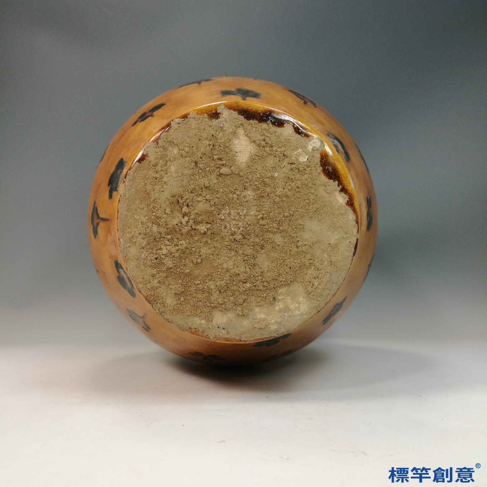 通高58公分,腹最大直徑約28公分。瓶身呈橢圓形鼓腹,短頸外撇,口沿較寬,肩部對稱設雙龍耳,龍首貼於瓶口,龍身曲折貼沿至瓶肩。底部平整無釉,為支燒痕跡明顯之圈足。