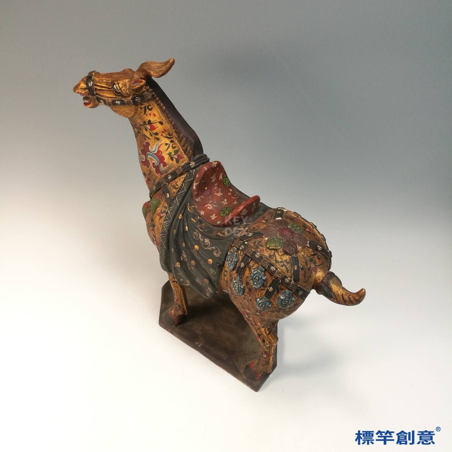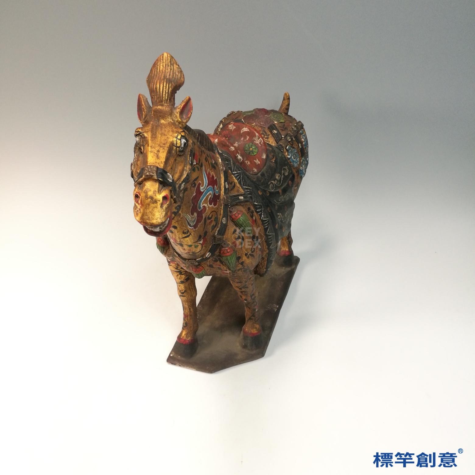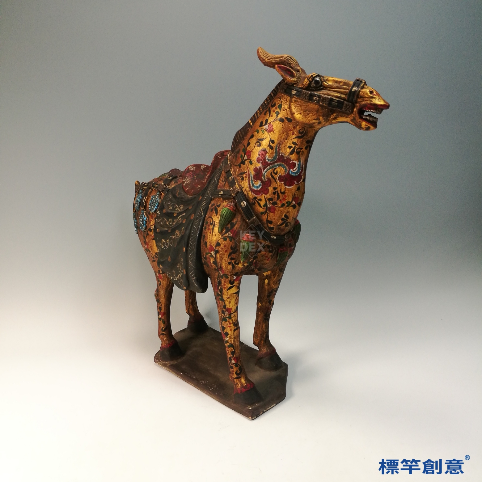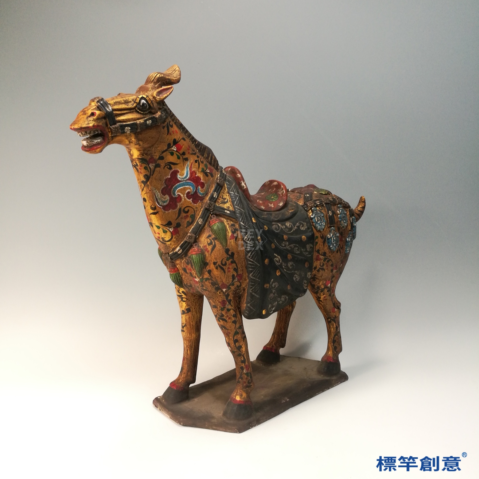 FB158 唐代鞏義窯黑陶金彩繪花卉陶馬