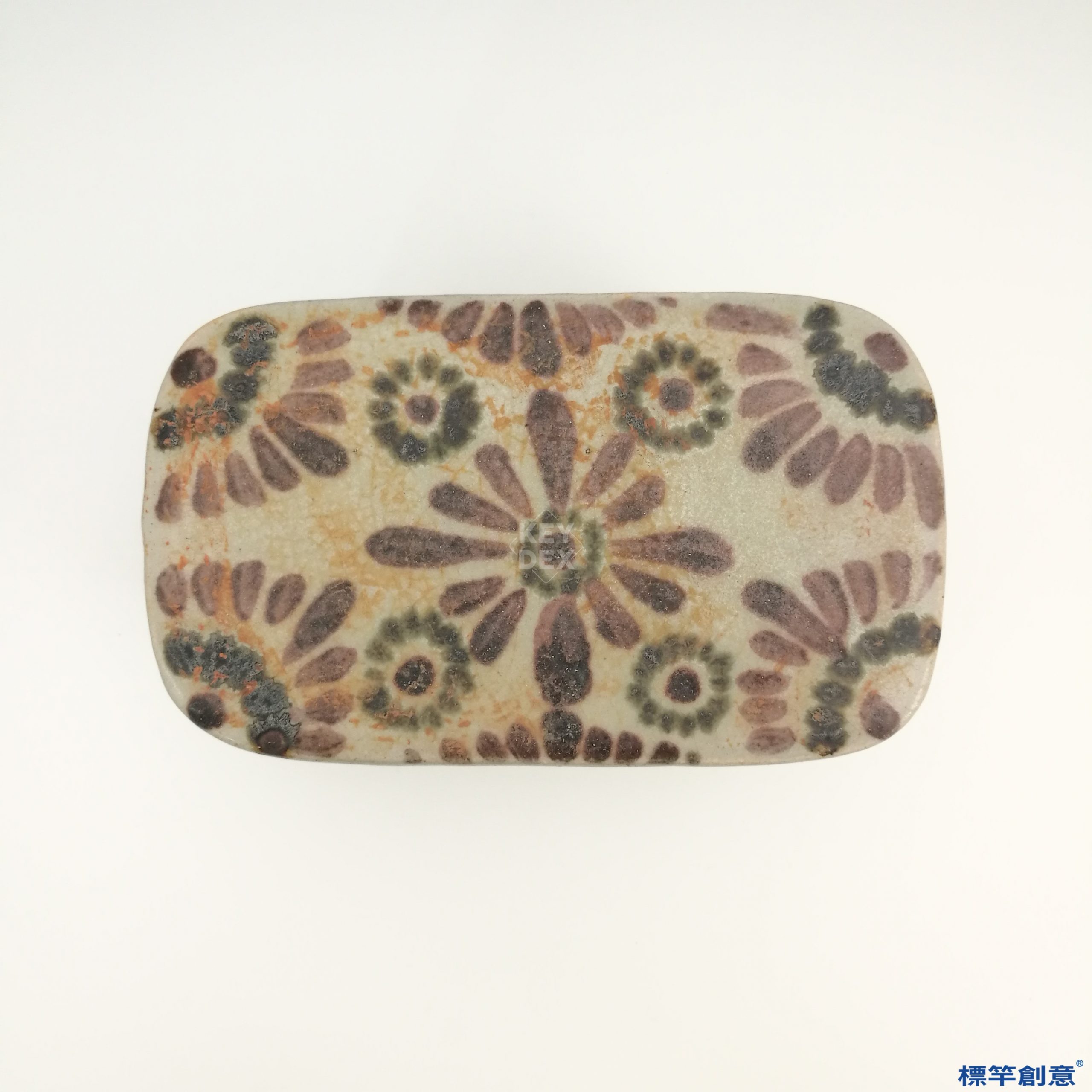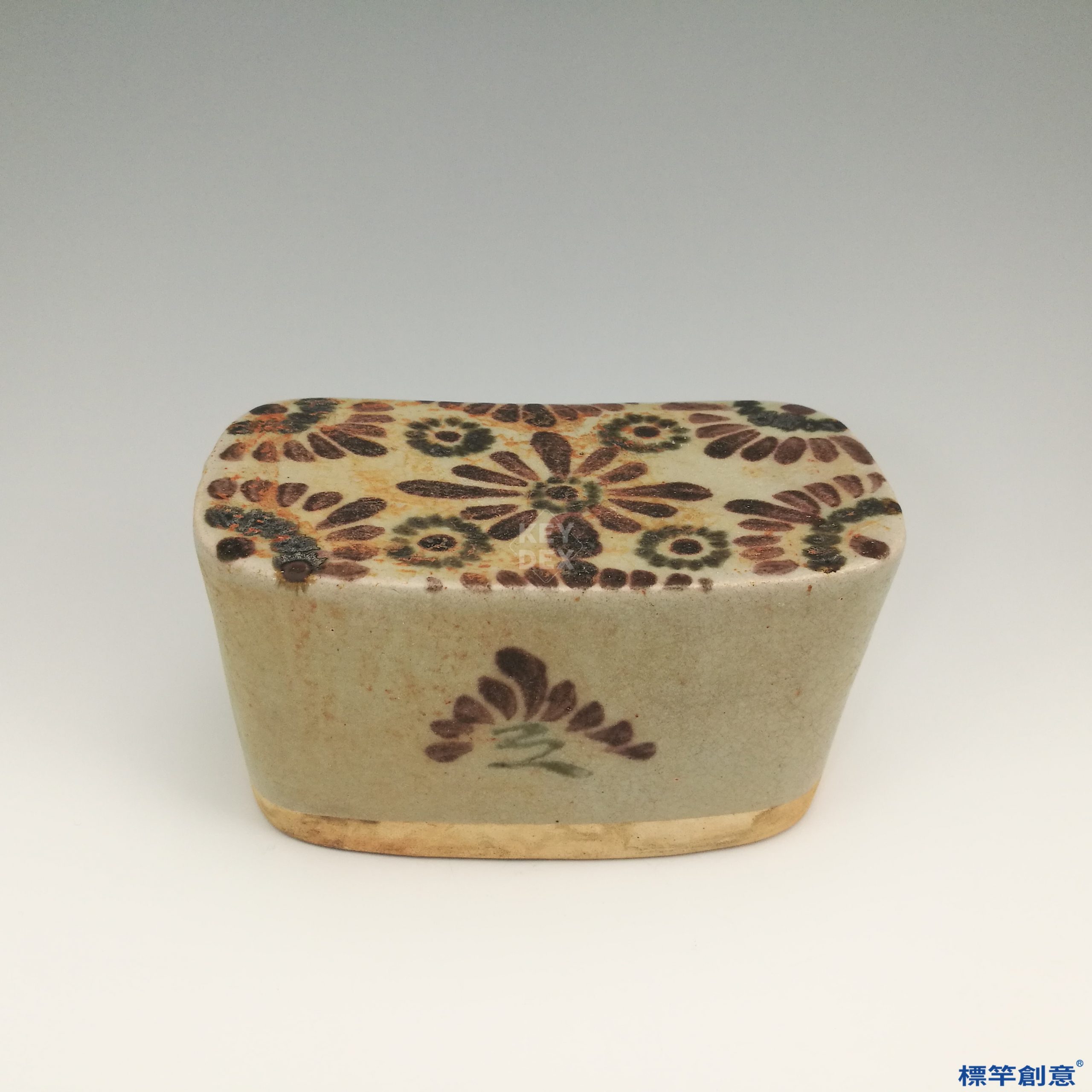 FB160 唐代長沙窯土青瓷青花釉裡紅點團花紋瓷枕