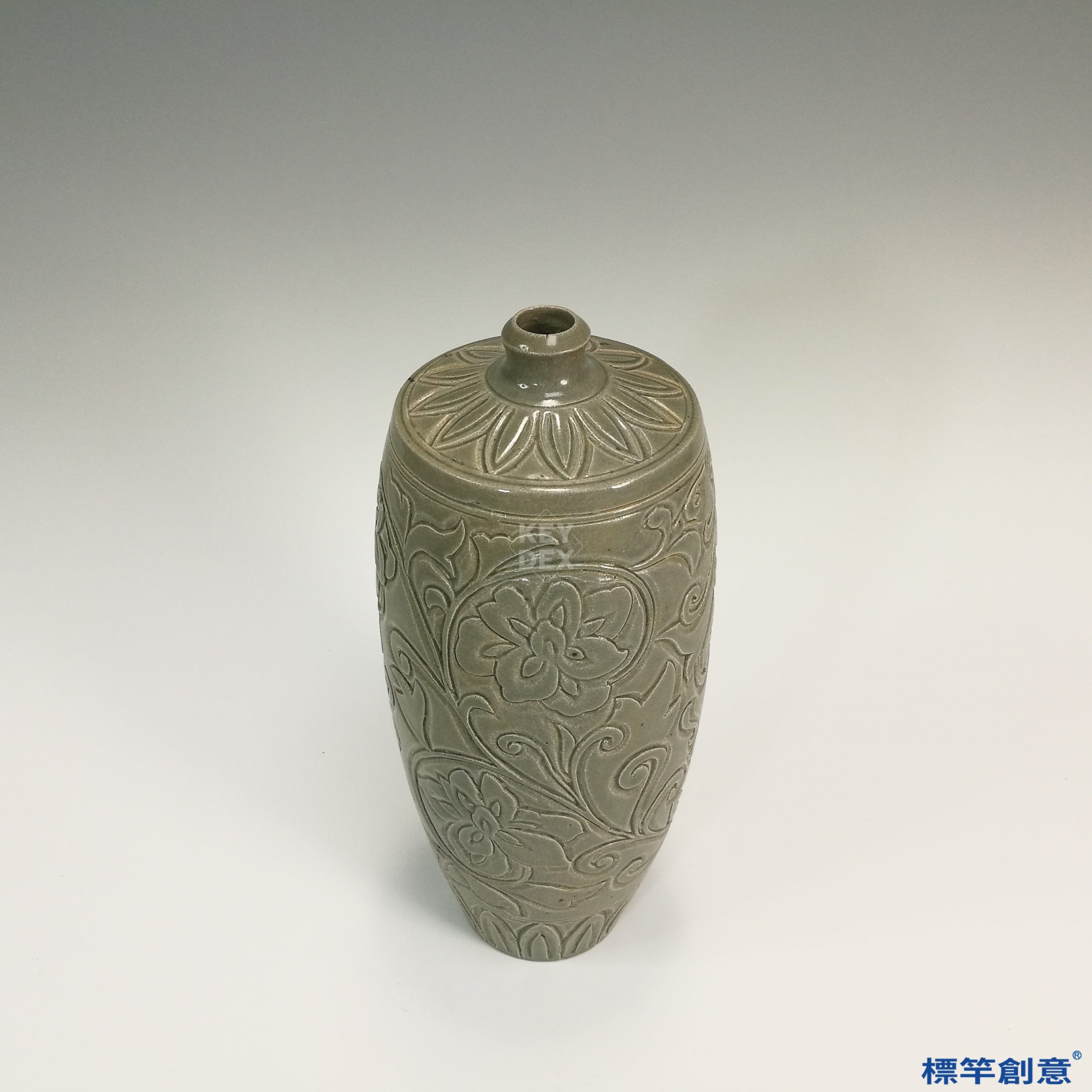 FC006 五代越窯青瓷刻纏枝花卉紋梅瓶