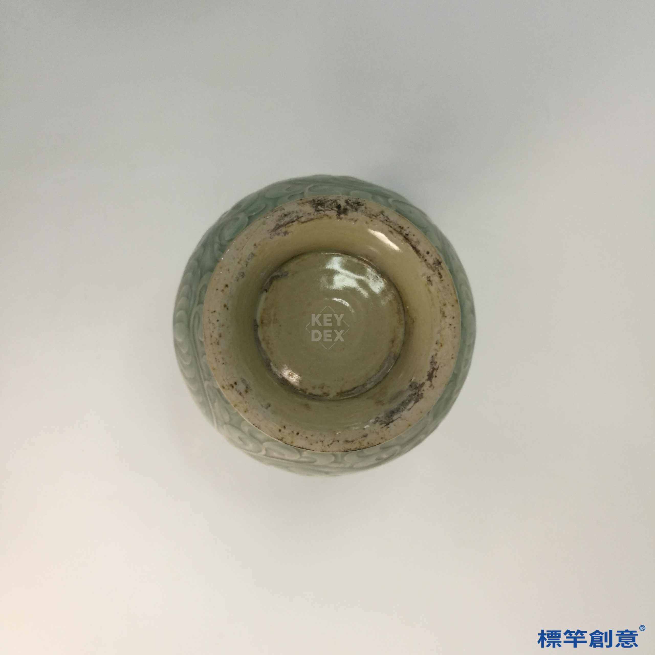 器物以陶輪拉坯成形,經乾燥修整後施以刻花裝飾,通體施淡青釉後入窯高溫一次還原燒成。耀州窯於五代時期已能穩定控制釉色、氣氛與刻花效果,作品表現細膩,工藝臻於成熟。