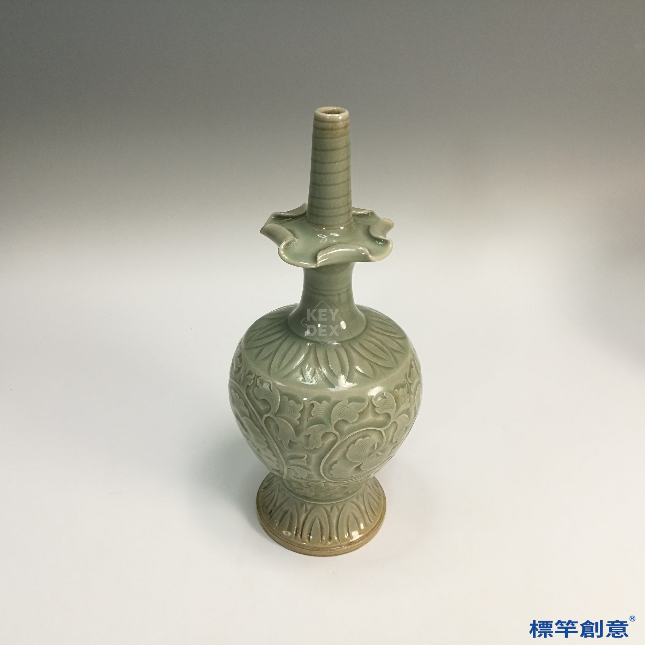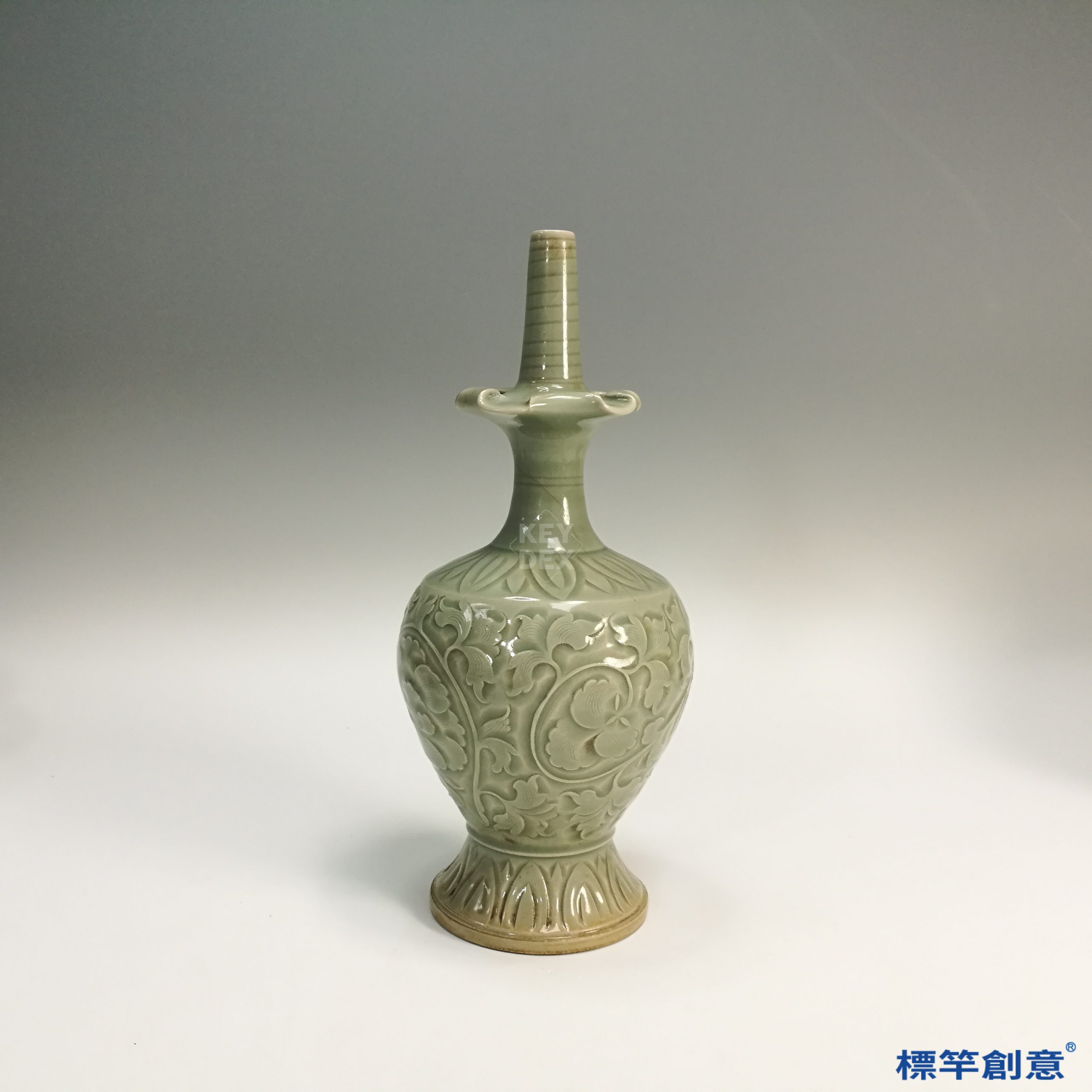 FC025 五代耀州窯淡青瓷刻纏枝蓮紋淨瓶式供水尊
