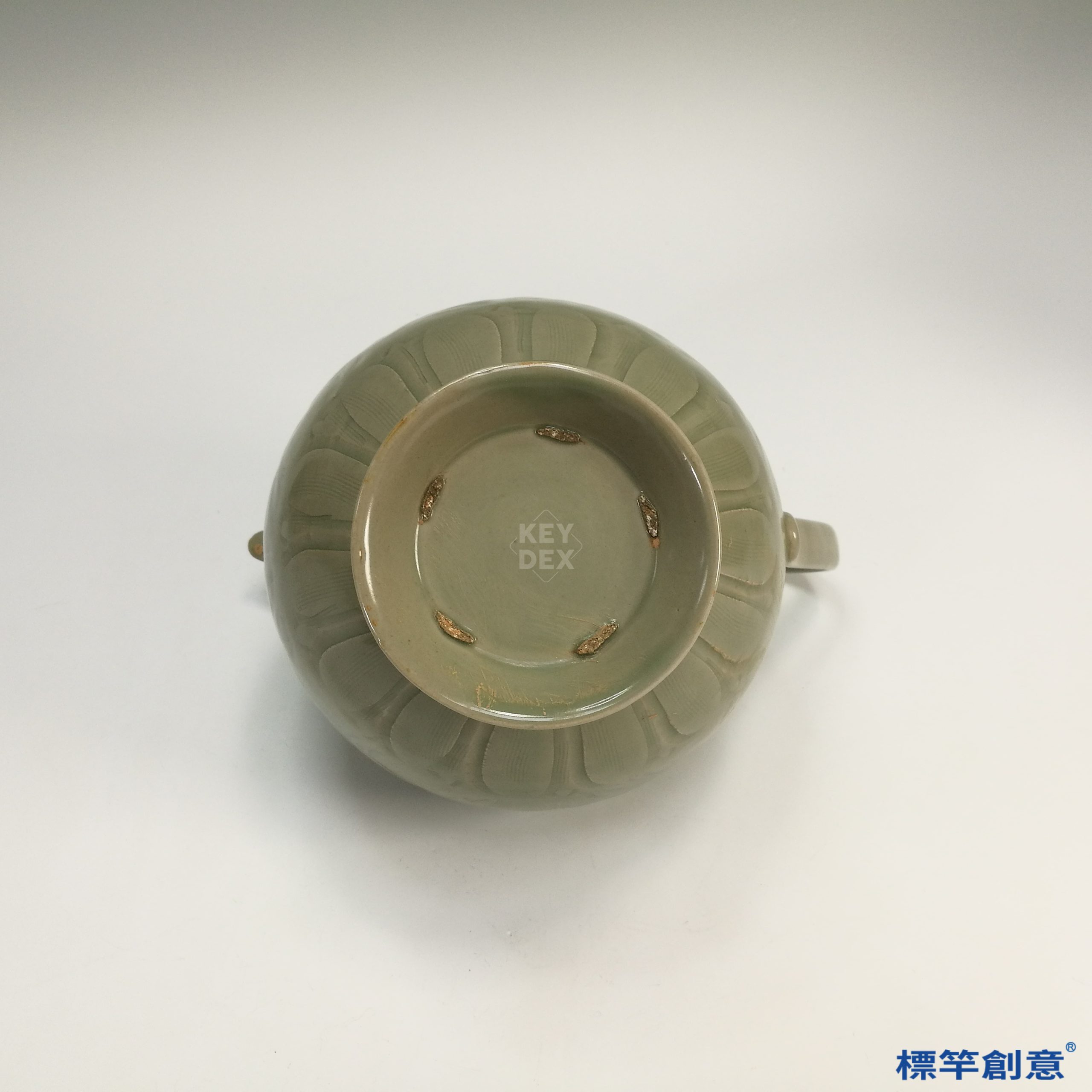此器以細白胎為基礎,先經輪製成形與細修,再以鐫刻方式雕出纏枝花卉,隨後施以祕色釉,入還原氣氛龍窯高溫燒成。整體釉色清澈通透,證實其燒製溫控掌握精準,技藝已趨成熟。