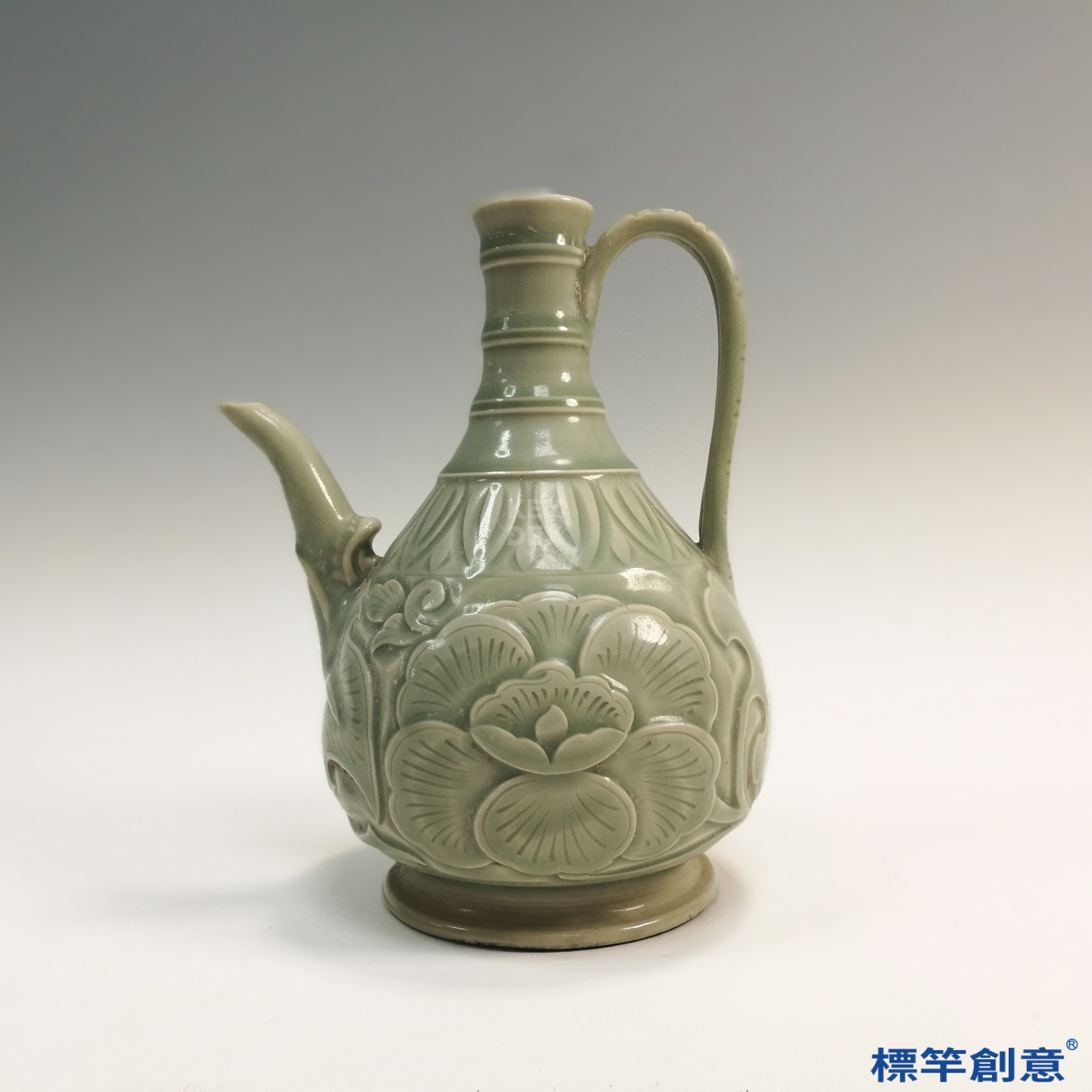 FC033 五代耀州窯淡青瓷刻牡丹紋執壺