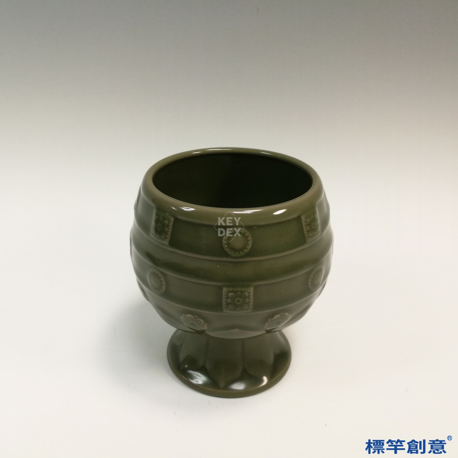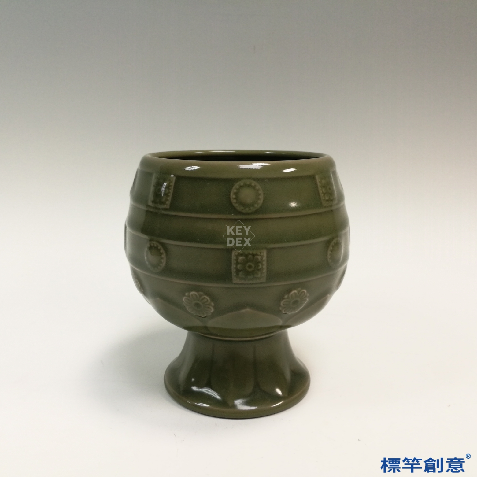 FC035 五代越窯祕色瓷寶相花紋高足供水杯