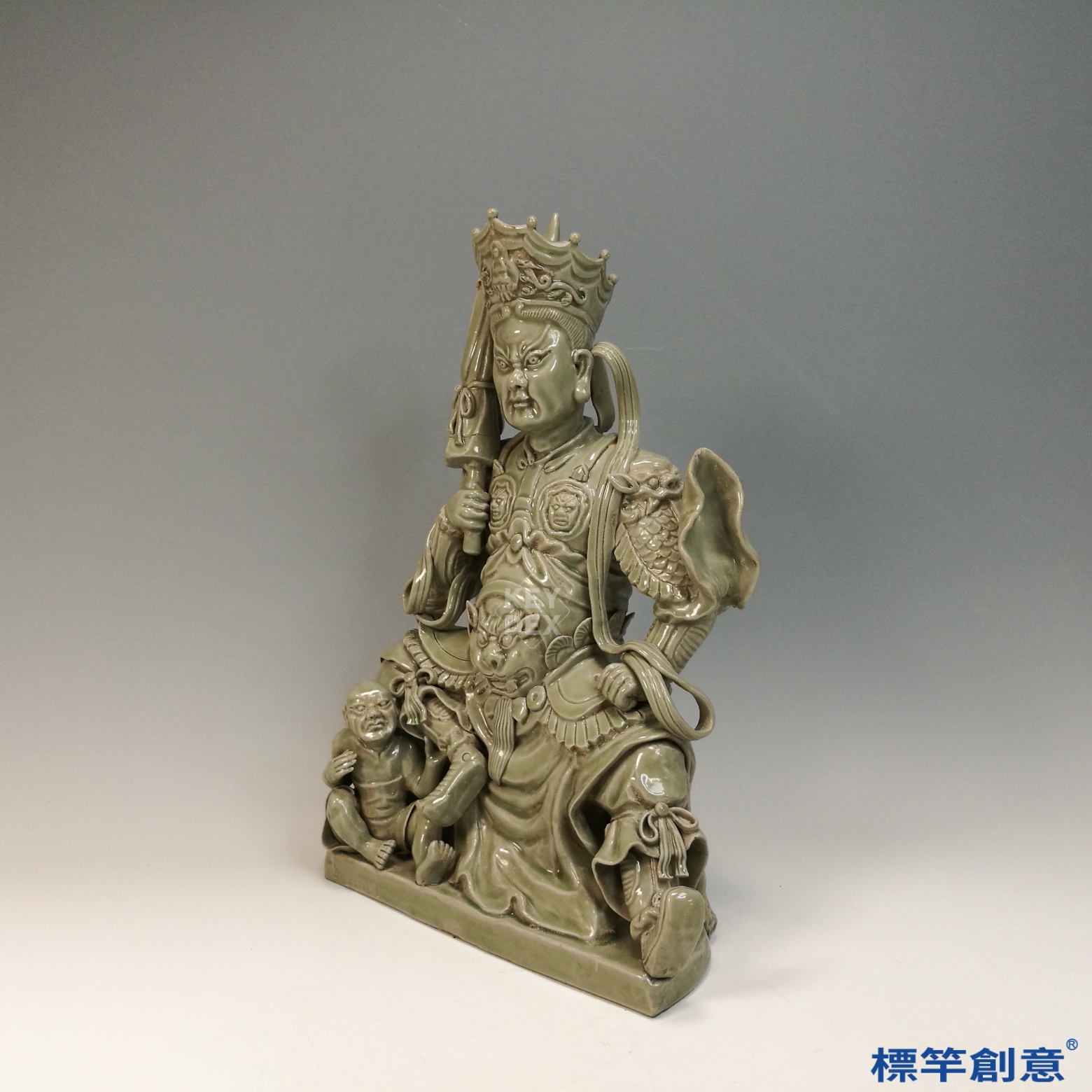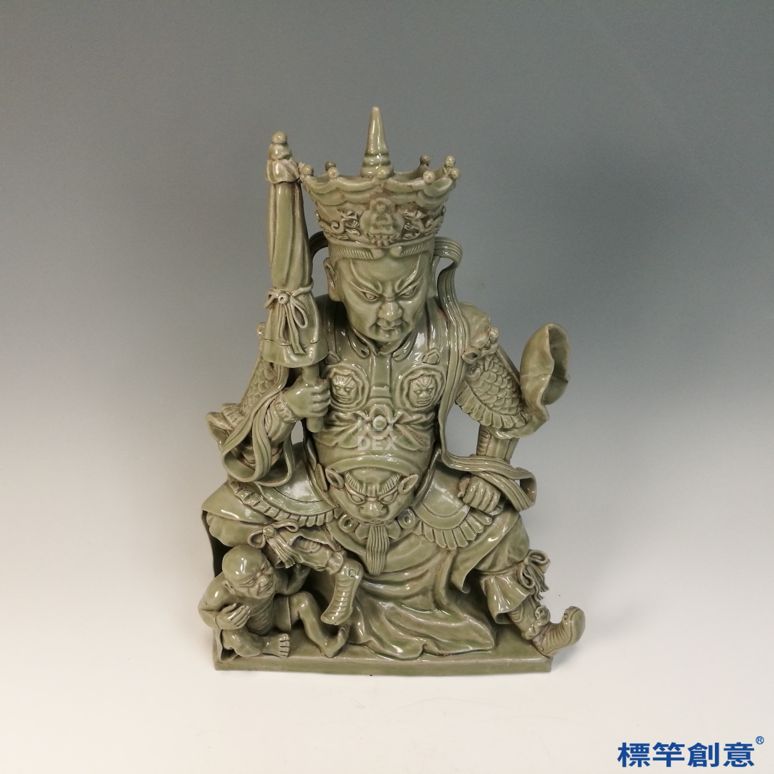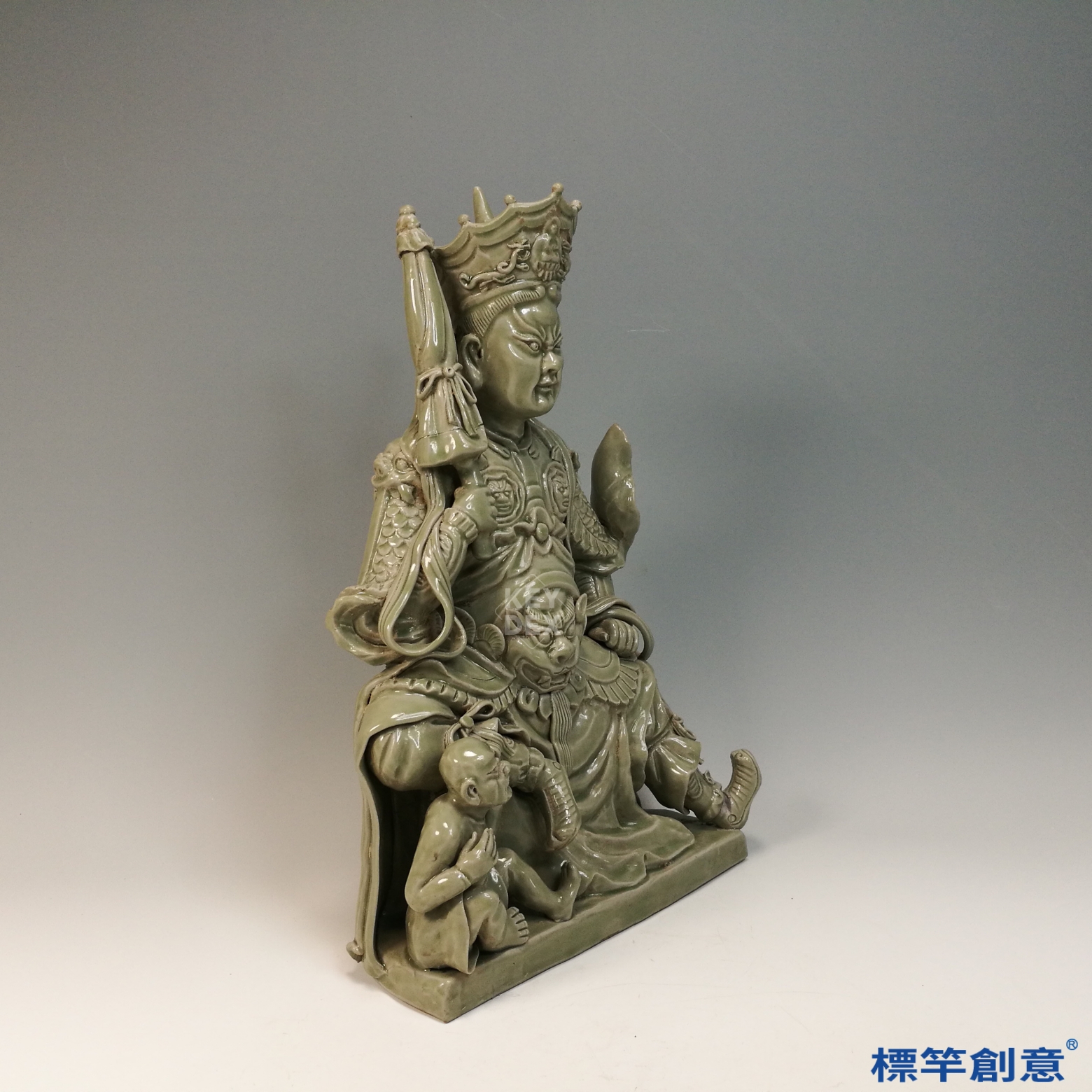 FC065 五代越窯青瓷持寶傘佛教北方多聞天王像