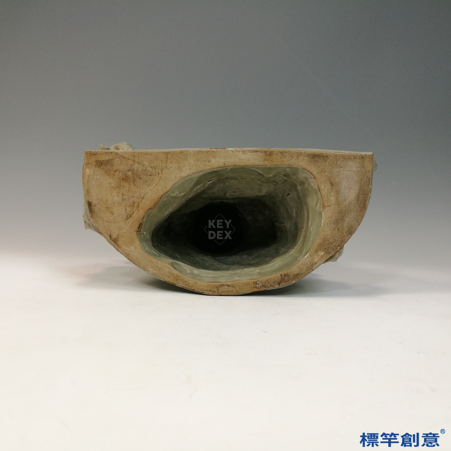 器物以細白胎土手工塑形後陰乾,局部細節使用模具輔助成形,再通體施以青釉,最後經高溫還原氣氛燒製而成。由於造形複雜,燒成過程中控制收縮與釉面流動尤為困難,顯示越窯成熟的整體工藝水準。