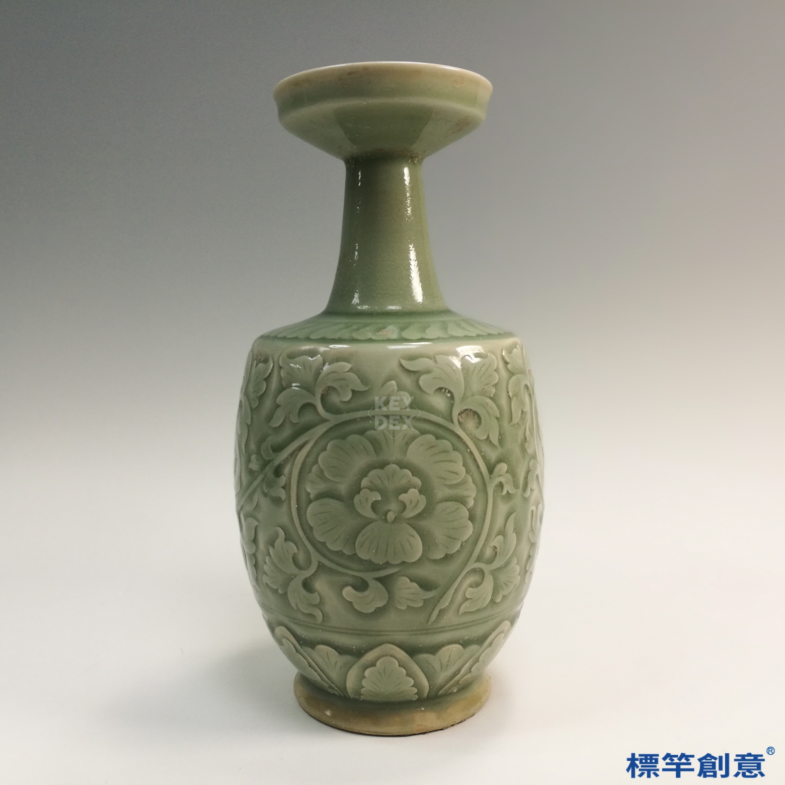 FC067 五代耀州窯淡青瓷刻牡丹花紋盤口瓶