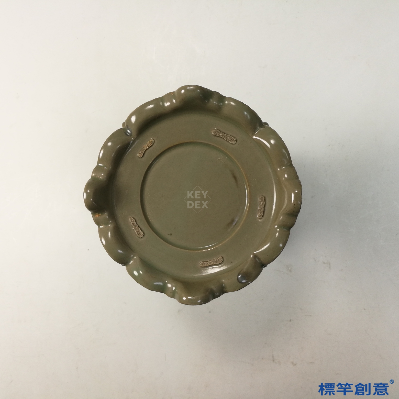 此器為五代時期越窯所燒製,為浙江一帶青瓷名窯的代表作。五代越窯青瓷延續晚唐技術,在造型、裝飾與釉色上趨於多樣與精緻,為北宋官窯興起前的重要銜接。