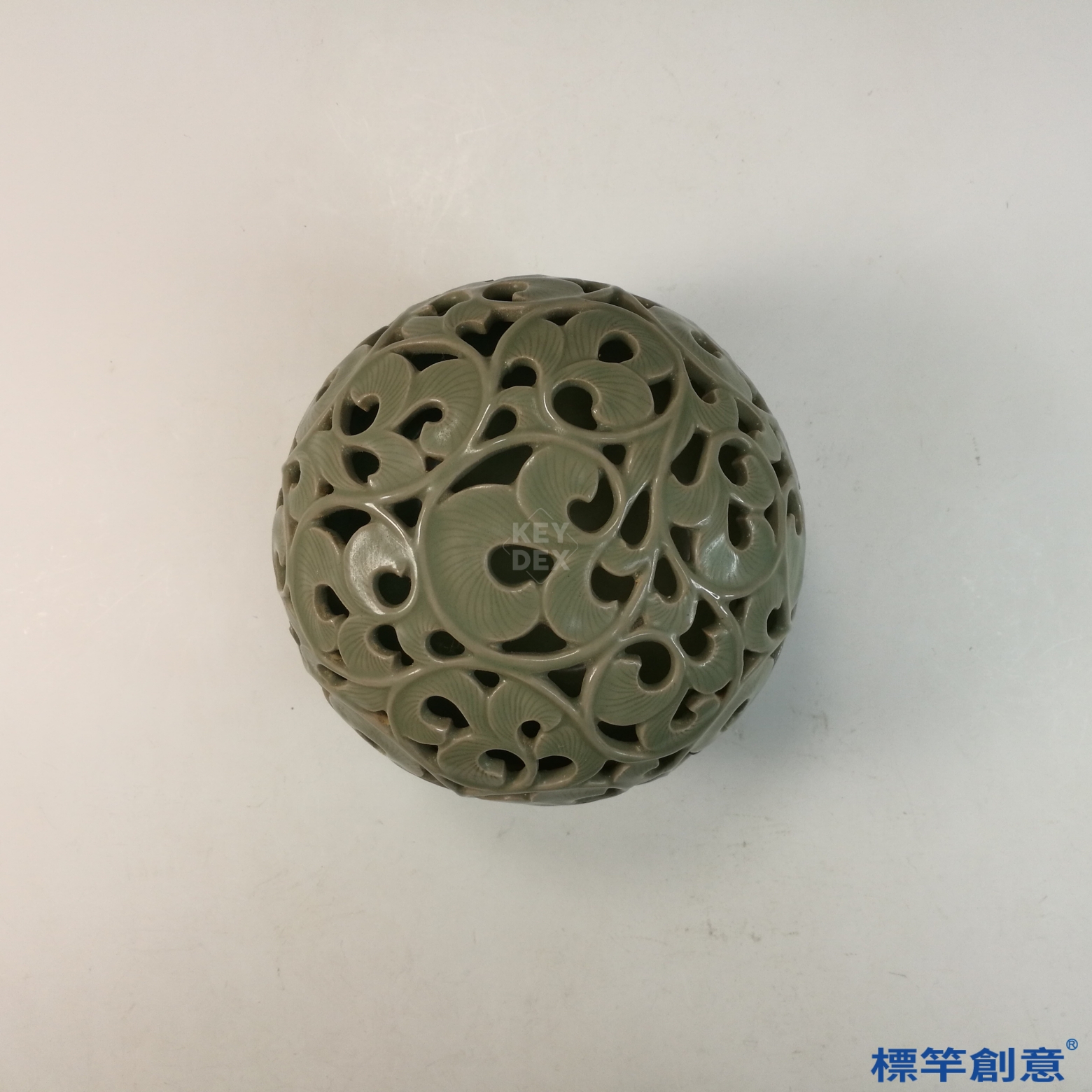 FC077 五代越窯青瓷鏤空刻纏枝菱葉紋蓮座薰香爐