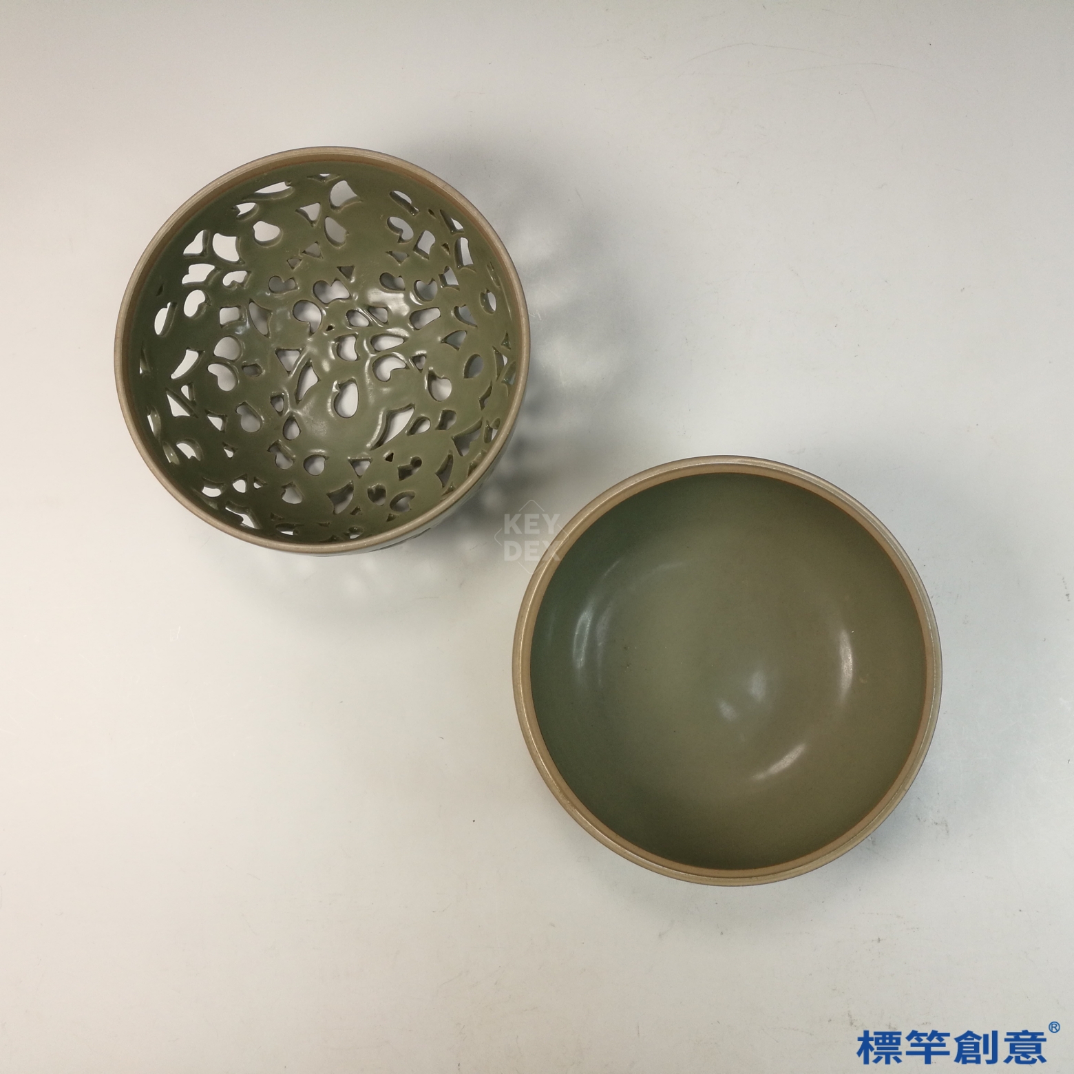 整器採分段成型,器蓋以透雕後再刻花修飾,主體與底座分別施釉,經高溫還原氣氛中一次燒成。鏤空與釉面過渡自然,顯示燒成氣氛掌控精準,為越窯高水平技術體現。