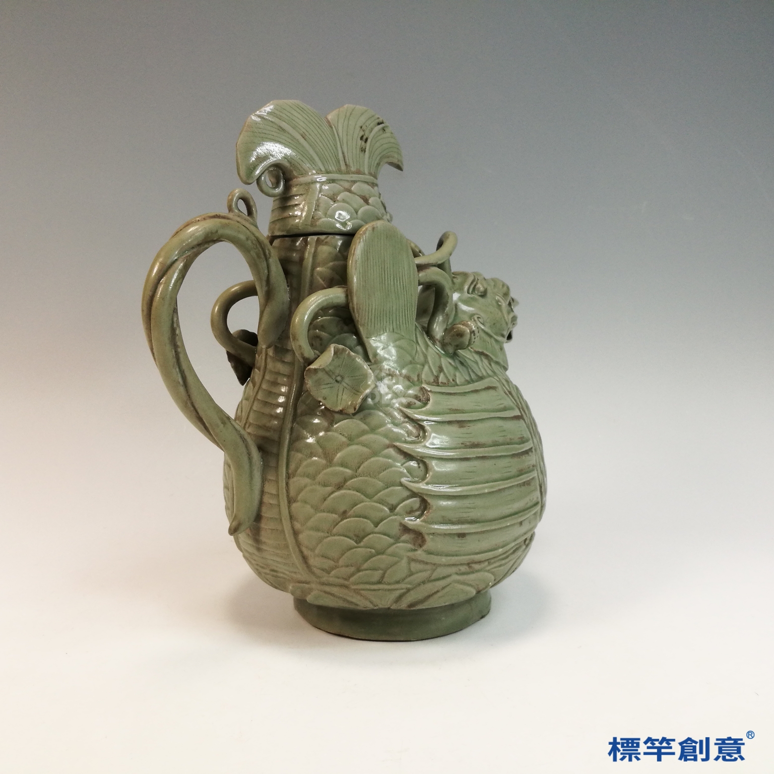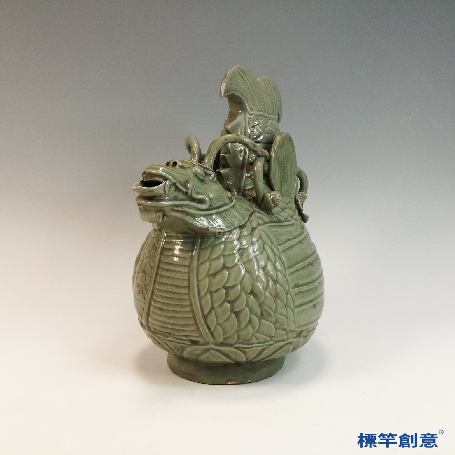 FC083 五代越窯青瓷佛教摩羯魚供水器淨瓶