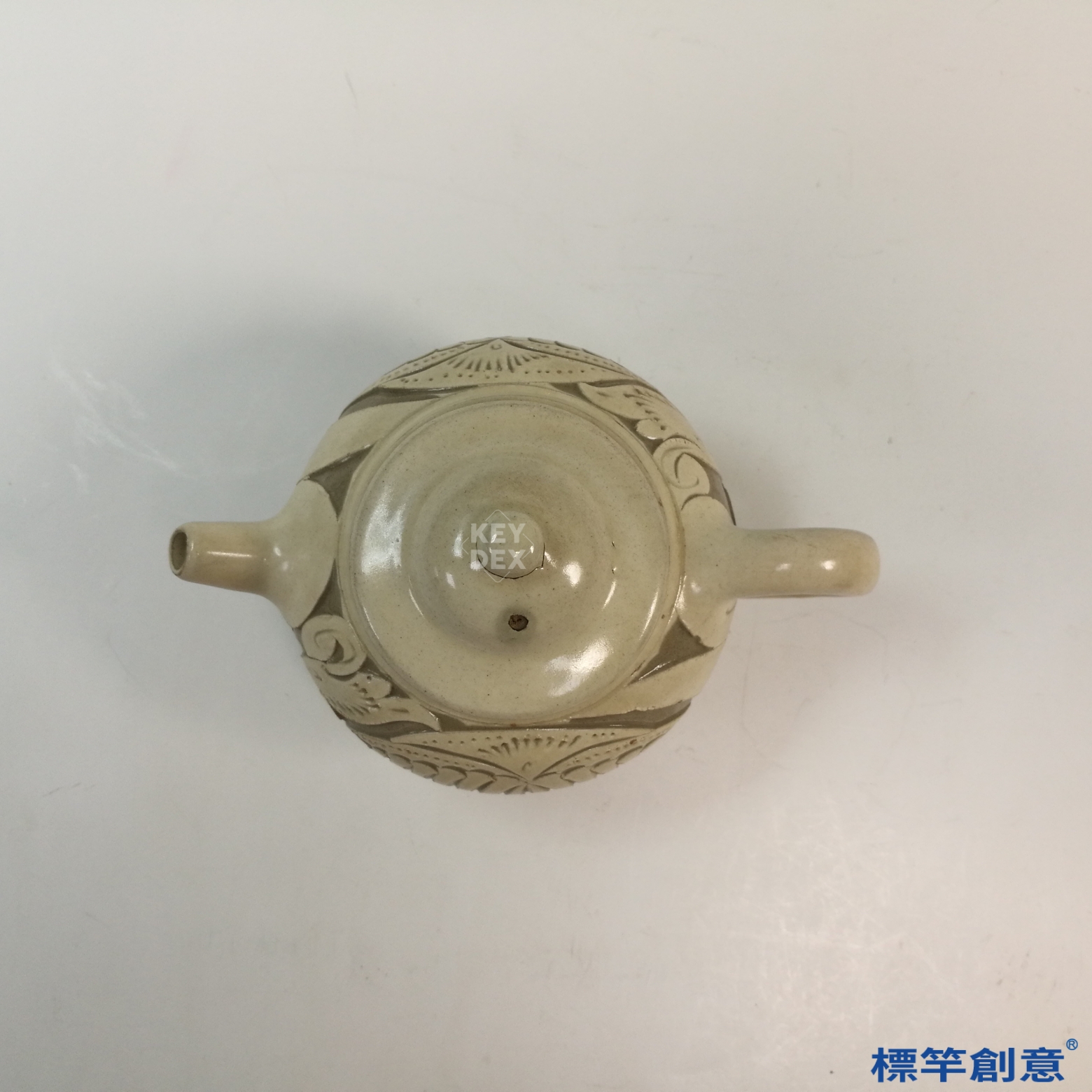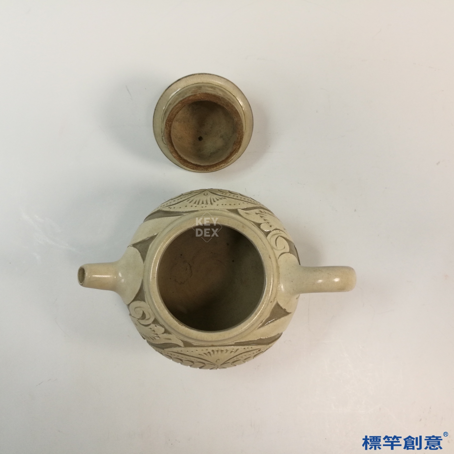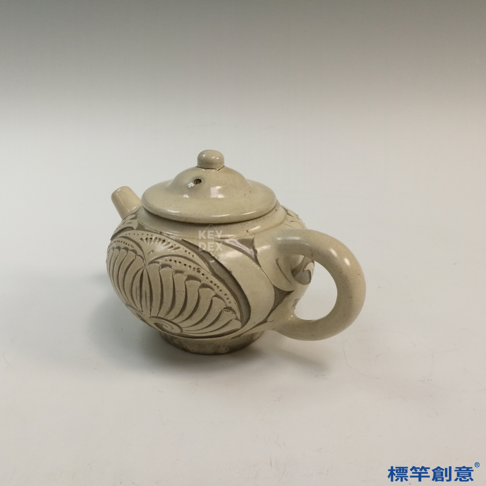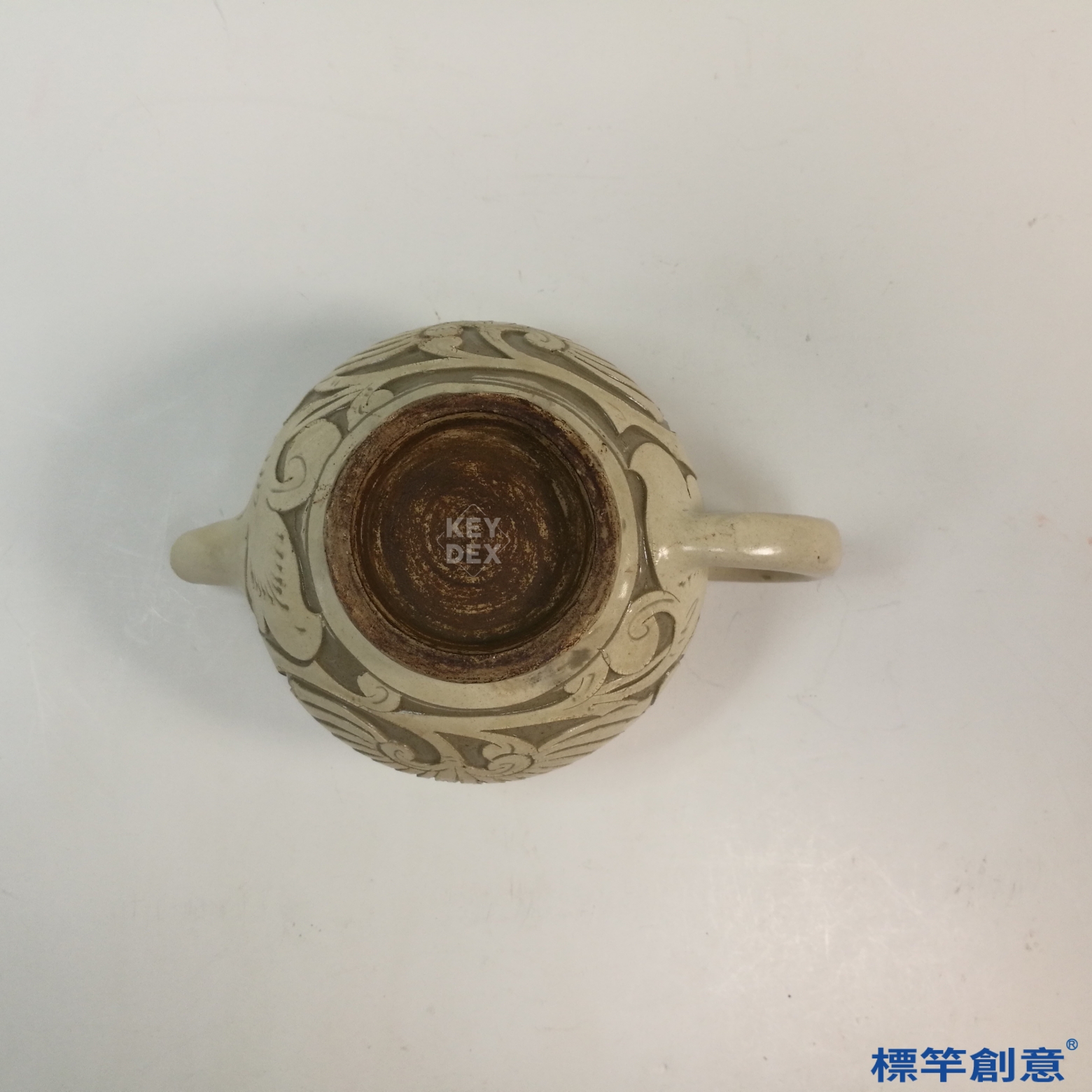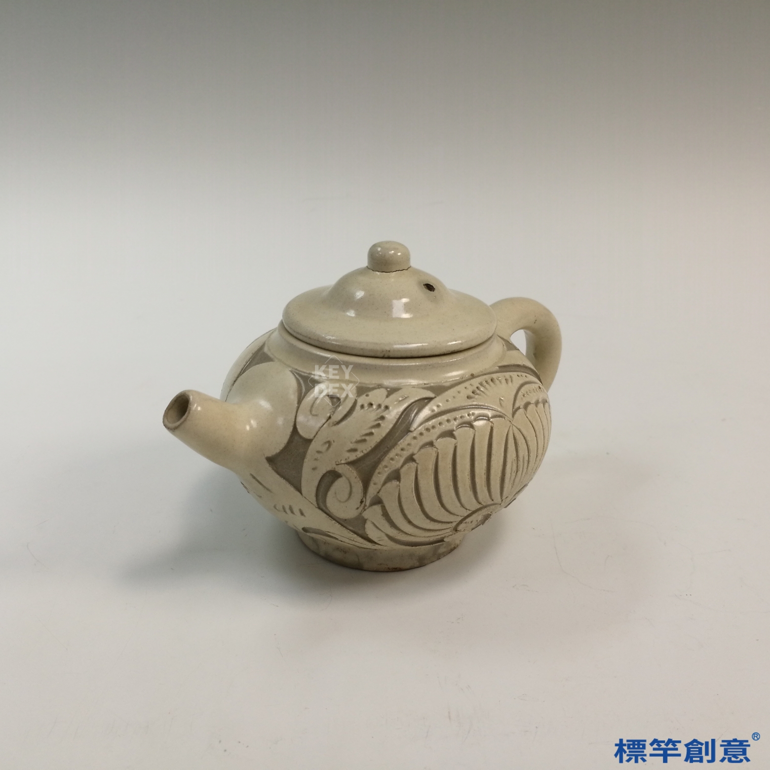 GA029 宋代磁州窯米白釉刻纏枝蓮紋茶壺