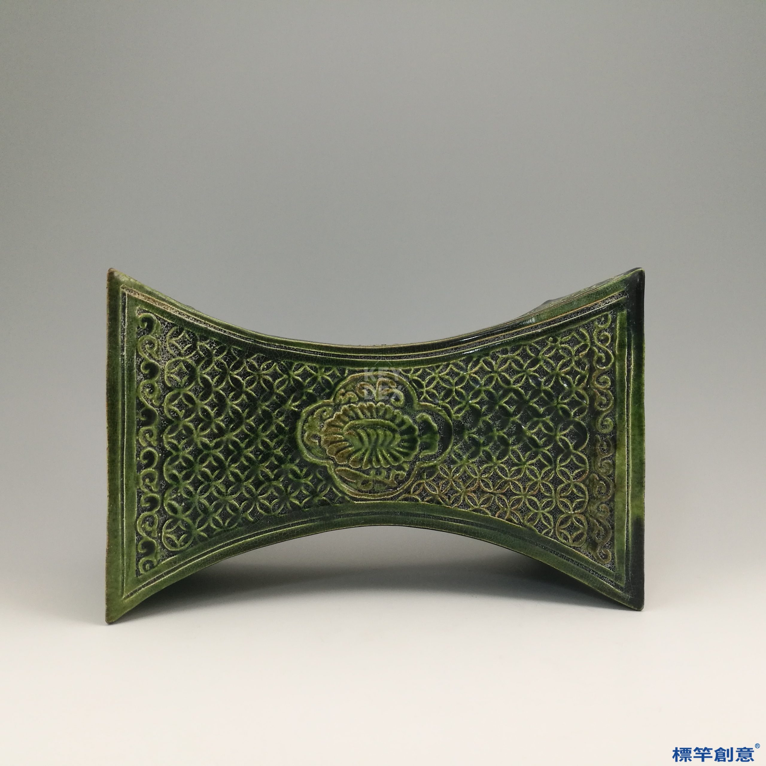 GA031 宋代磁州窯綠釉刻銅錢紋求財瓷枕