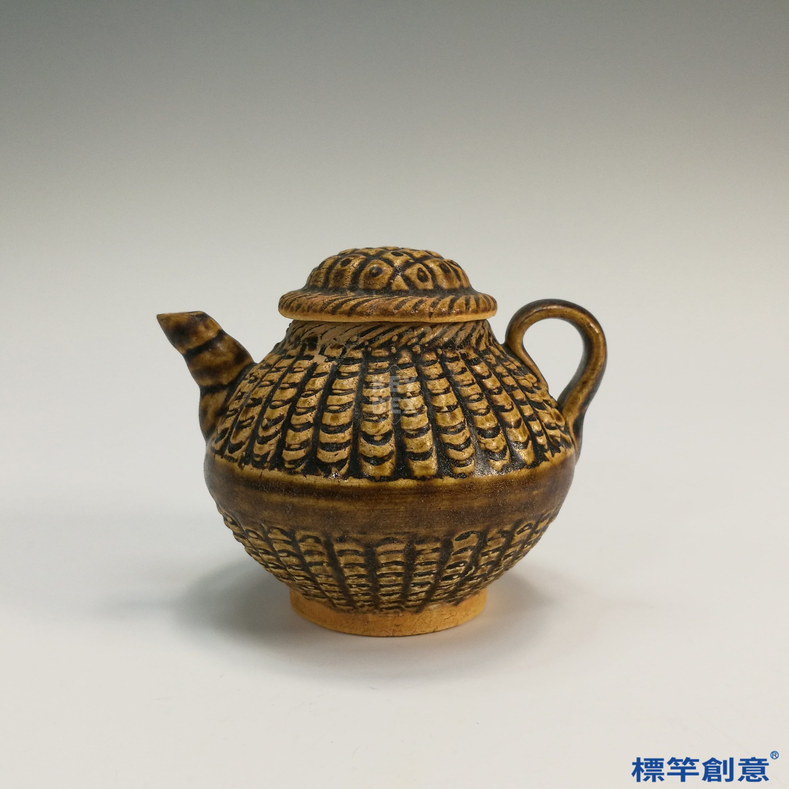 GA044 宋代建窯醬釉魚簍紋無蓋鈕執壺