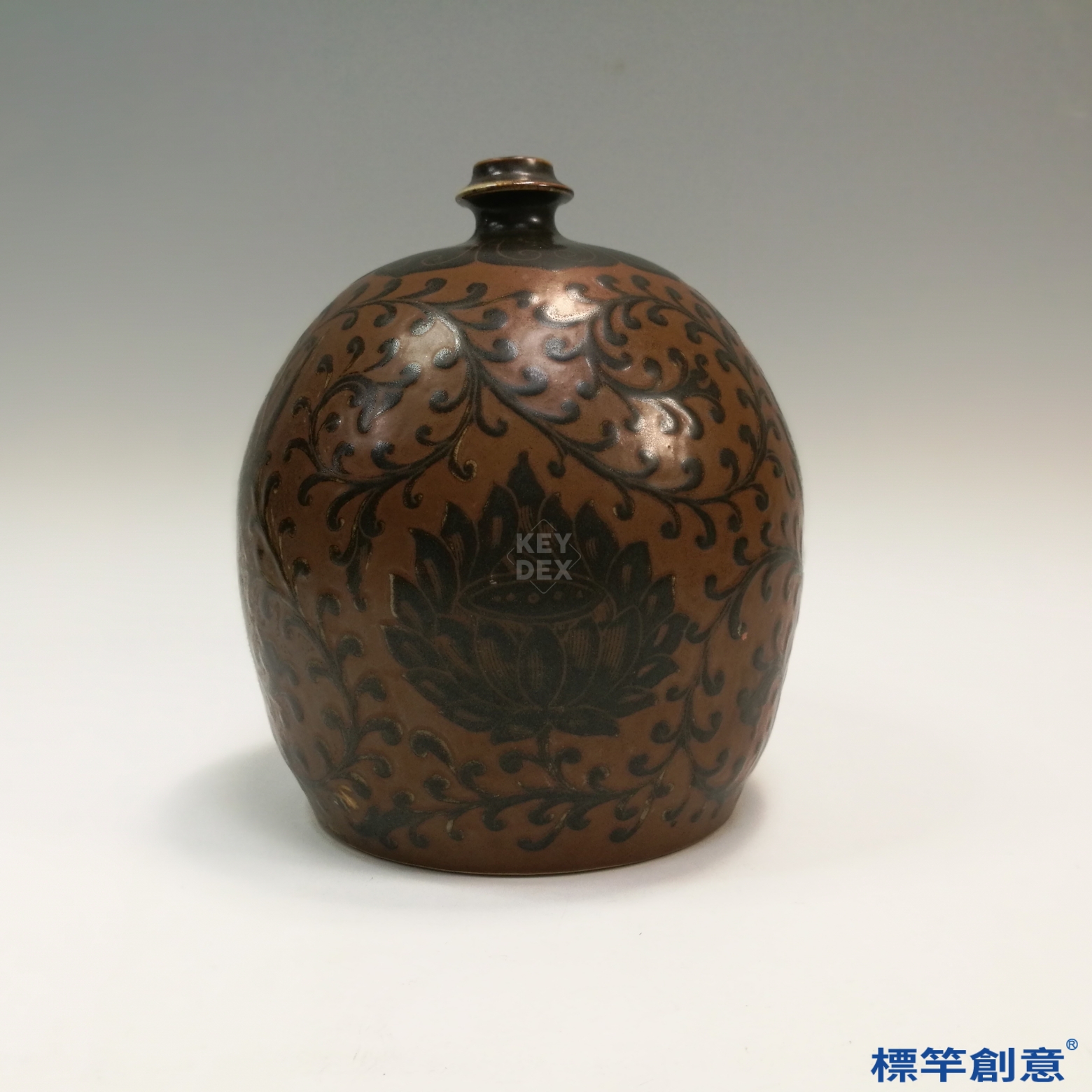GA060 宋代定窯醬釉黑彩纏枝蓮紋卣形半梅瓶