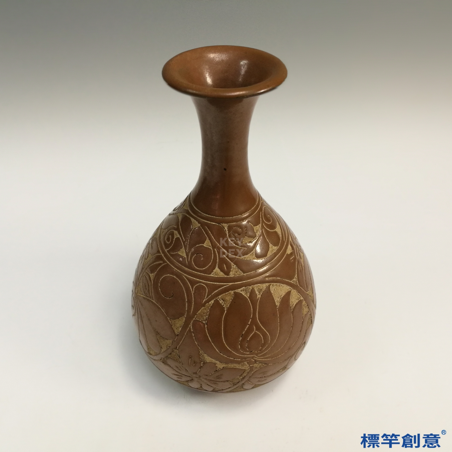 GA062 宋代磁州窯褐釉剔刻纏枝蓮紋玉壺春瓶