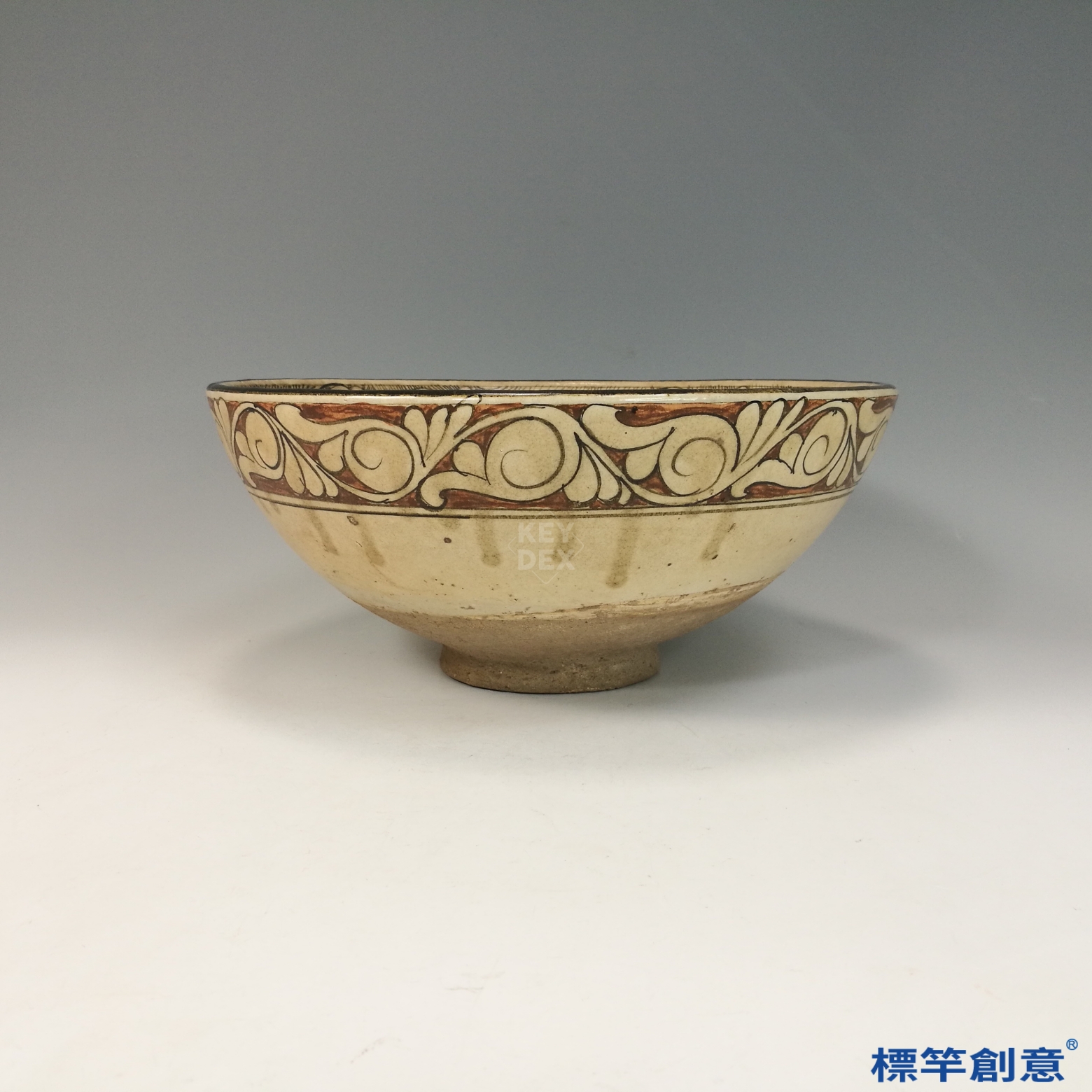 本器通高12公分,口徑27.5公分,敞口,深弧腹,圈足略內收,重心穩定。口沿平齊,碗體開闊,適合盛湯或液態食物,為宋代北方常見大碗器型。