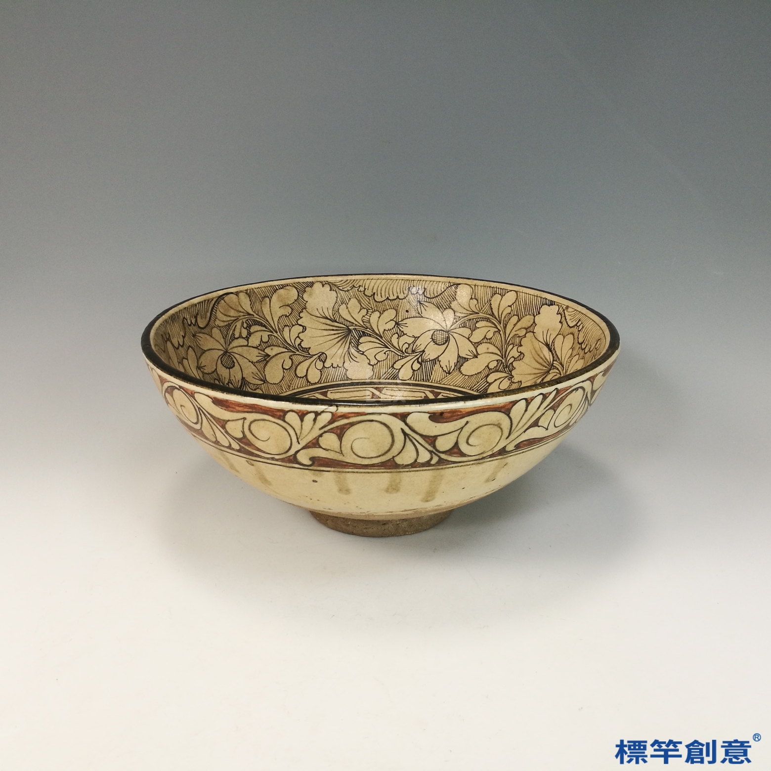 此碗兼具實用與裝飾性,是磁州窯白地黑彩裝飾的經典範例,反映宋代北方民窯審美取向與工藝創新。魚紋象徵年年有餘,纏枝花卉寓意生生不息,文化與實用功能並重,對研究宋代生活文化及瓷畫裝飾具有重要價值。